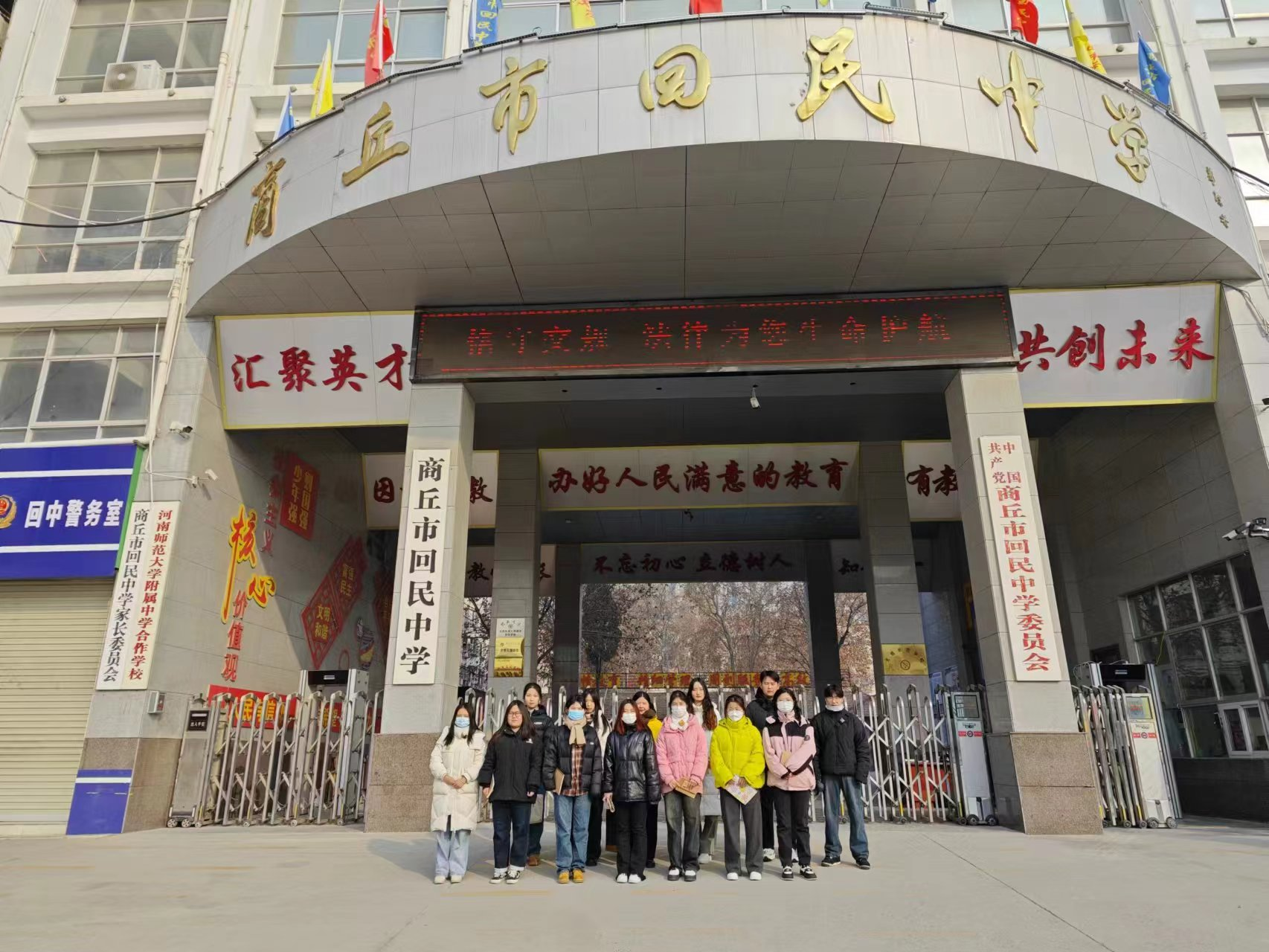 在戴承德老师的带领下,第7工作坊坊员多次进入了商丘市回民中学的校园中开展实践活动。初进校园,戴老师就向坊员讲述了回民中学“让有为者有位,让优秀者优先,让吃苦者吃香,让实干者实惠”的新校训,让坊员了解校园文化建设。