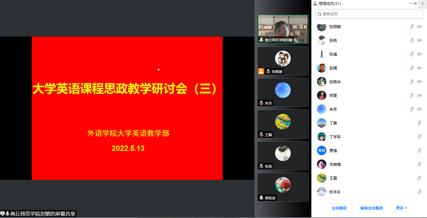 为深入贯彻习近平总书记关于“大思政课”建设的重要指示精神,全面落实《关于新时代加强和改进思想政治工作的意见》,william威廉中文大学英语教学部于2022年5月13日下午利用网络平台组织召开了威廉希尔改革第三次教研会。本次会议由大学英语教学部主任刘敏主持,大学英语第一、第二教研室所有老师全员参会。