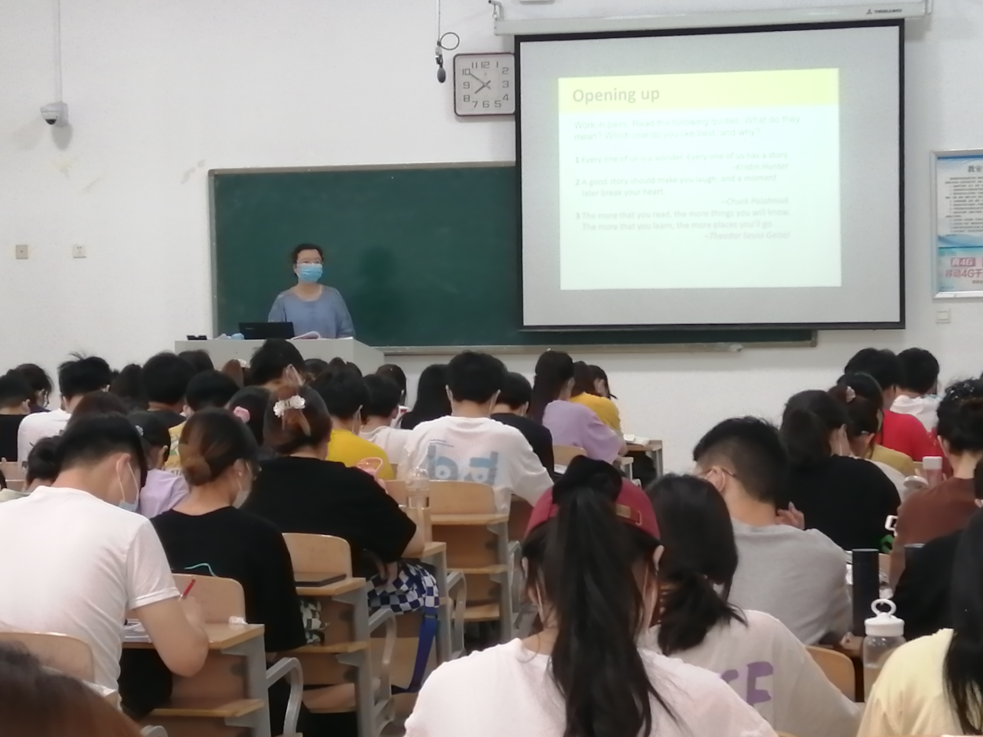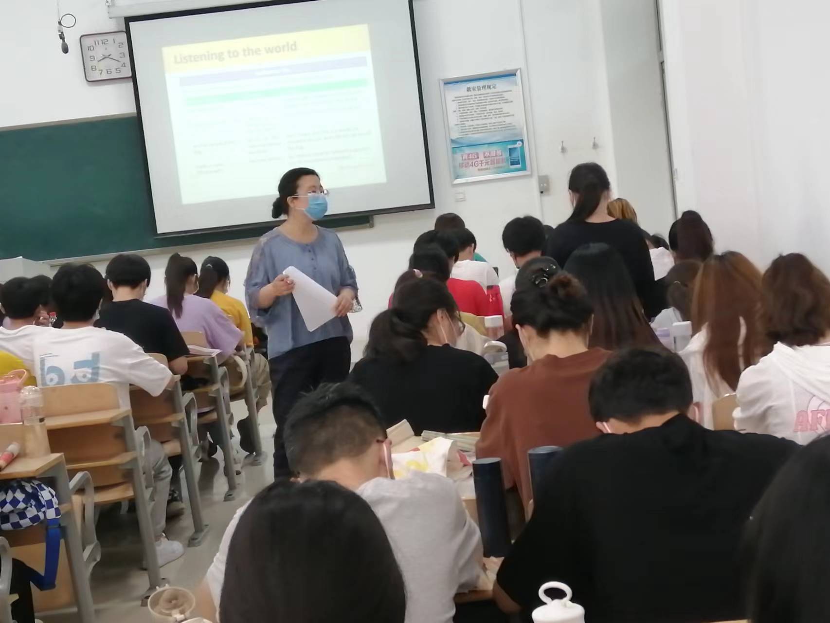 2022年5月24日上午第1节在梁园校区行方楼102教室,william威廉中文黄明老师举行了“OBE理念指导下的U-FIT模式《大学英语视听说》混合式范式教学改革探索与实践”的教学范式改革公开课。学校督导林富丽,大学英语教学部刘敏主任,马红玲等教师观摩了本次公开课。