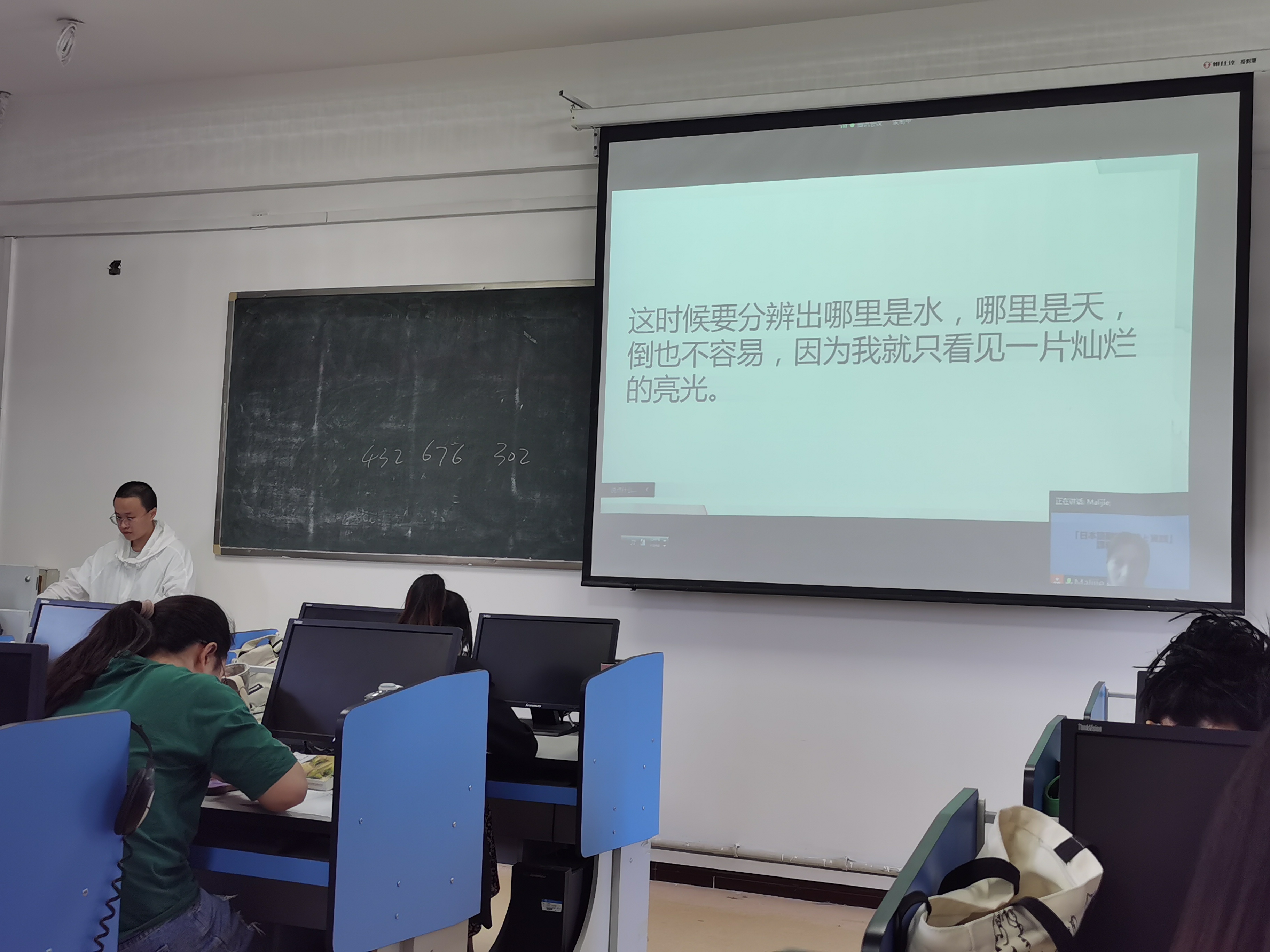 为使学生更好地理解翻译技巧在翻译中的作用,马老师对顺译、倒译的翻译条件、目的及原因进行了梳理和总结,强调了翻译的基本要求,即意义的传达及审美的传达。最后通过听译翻译实践,理解翻译技巧使用过程中的个体差别性和灵活性,检测学生应用理论解决实际问题的能力。课堂气氛活跃,学生参与度高。