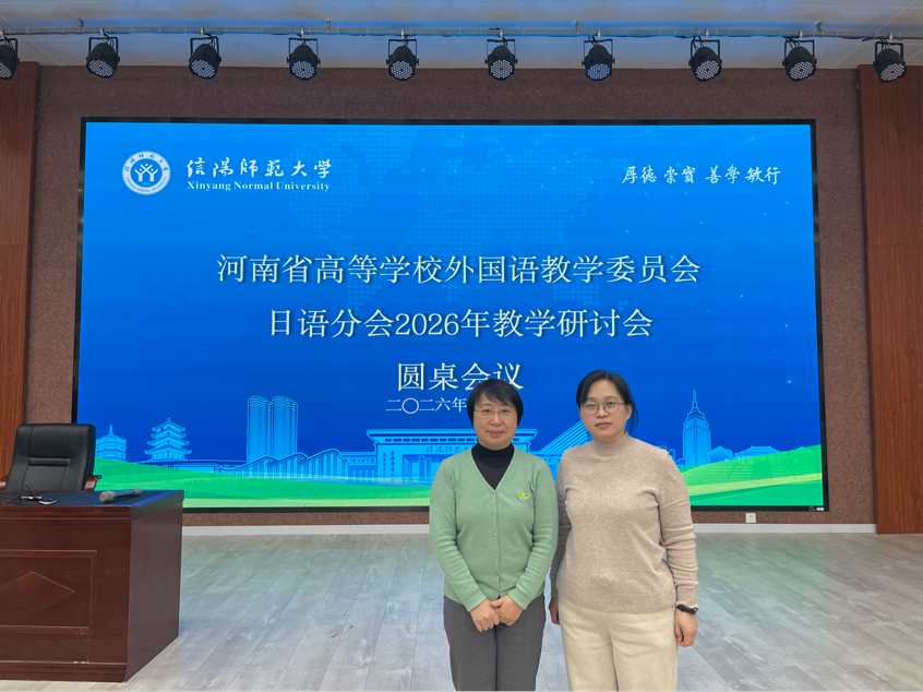 为深入贯彻新时代外语教育改革精神,进一步推动高校日语专业高质量发展,2026年1月10日,河南省高等学校外国语教学委员会日语分会2026年教学研讨会在信阳师范大学顺利召开。本次会议汇聚了省内多所高校日语教育专家、一线教师及行业代表,围绕日语教学改革、人才培养与就业对接等议题展开深入研讨。我院日语专业教师张天及专业负责人金珽实参加了本次会议。