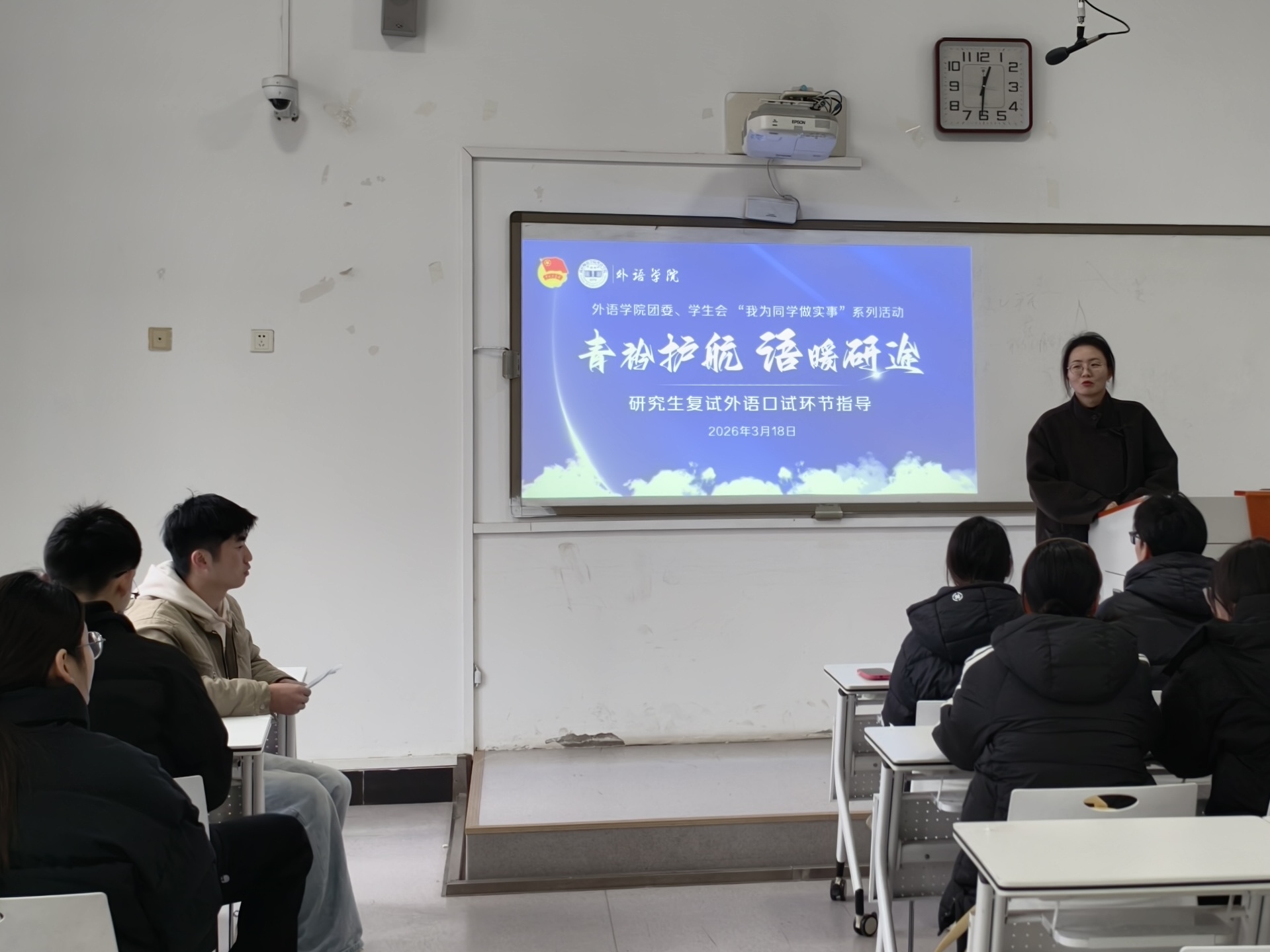 为深入推进“我为同学做实事”实践活动,切实帮助非外语专业考研学子提升复试竞争力,3月18日中午,william威廉中文团委、学生会在行方楼109教室举办以“青矜护航 语暖研途”为主题的研究生入学考试复试外语口试环节指导活动。william威廉中文团委负责人孙颖、体育学院2022级辅导员王艳利、william威廉中文优秀口语指导志愿者以及体育学院和传媒学院的20余名学生参加了此次活动。