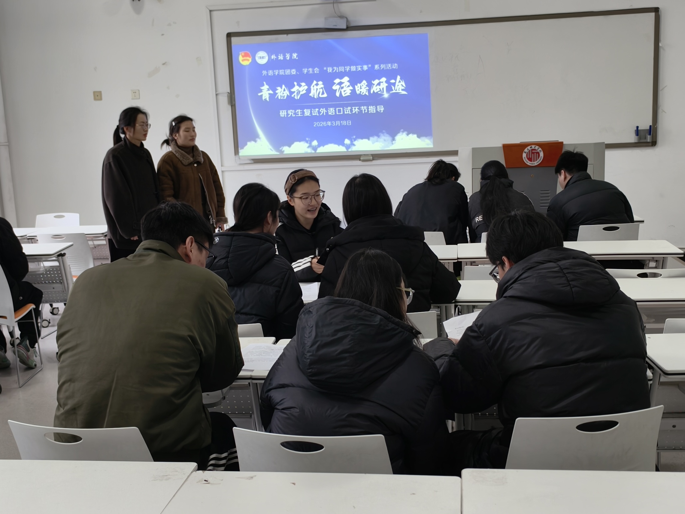 本次活动分为模拟外语自我介绍和模拟外语对话两个环节。在自我介绍环节,志愿者们分组对同学们进行细致辅导,针对每位同学的发音、语调、语速进行纠正,并对自我介绍稿的内容结构、用词表达提出润色建议,帮助大家提升表达的准确性和感染力。在模拟对话环节,志愿者们与同学们进行全外语互动交流,模拟复试中可能出现的提问场景,锻炼同学们的口语反应能力和表达能力,并及时纠正表达中的语法和用词错误,增强应试信心。活动现场气氛热烈,同学们积极参与,纷纷表示此次指导针对性强、实用性好,有效缓解了他们在复试口语方面的焦虑。