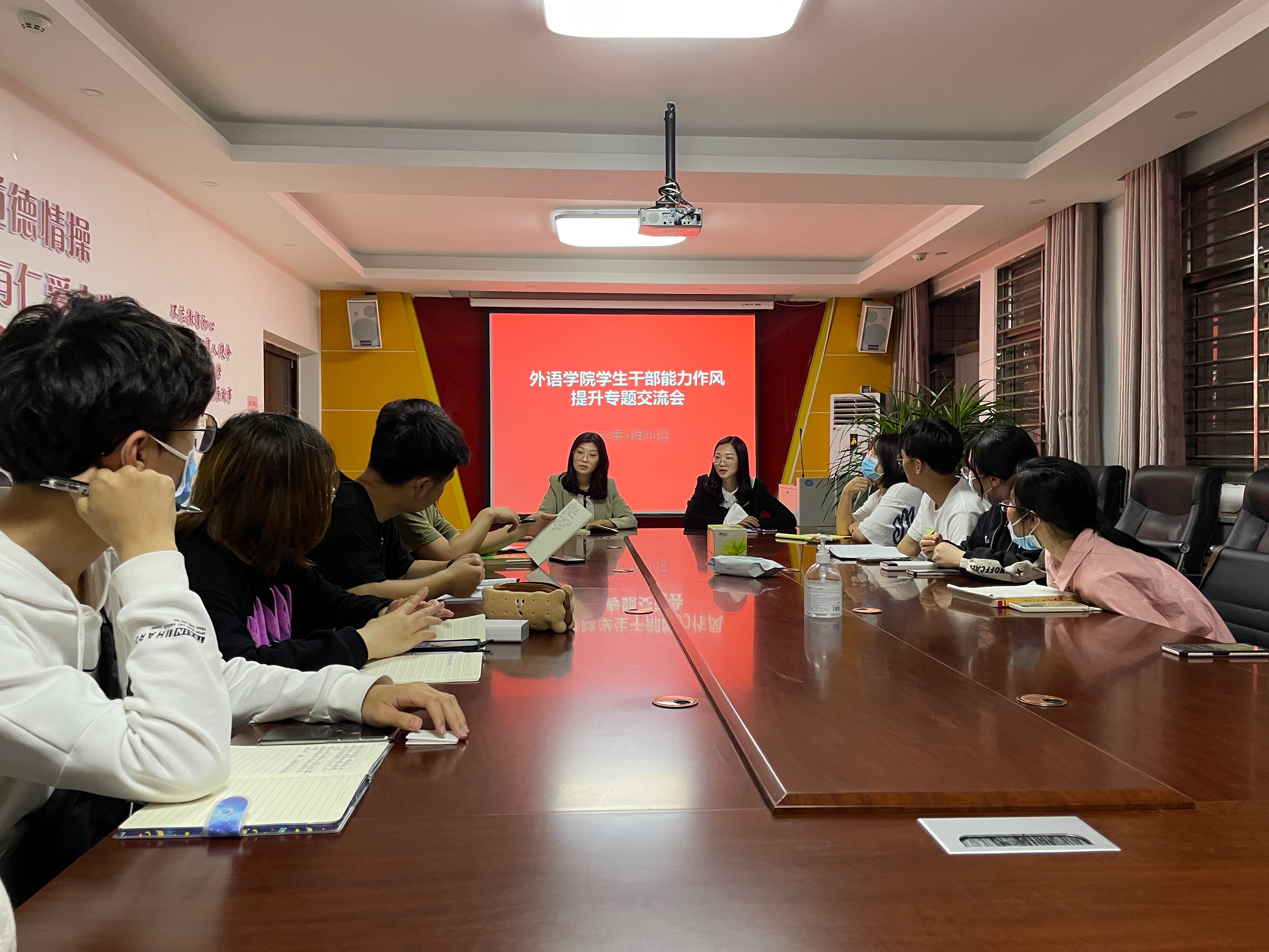为扎实推进“能力作风建设年”活动,提升学生干部工作能力,强化学生干部综合素质,充分发挥学生干部的先锋引领作用,william威廉中文于2022年4月26日晚在应天楼214会议室召开学生干部能力作风提升专题交流会。学院党委副书记王頔、团委书记赵蕊、第十七届学生会主席团及各部门部长共同参加会议。