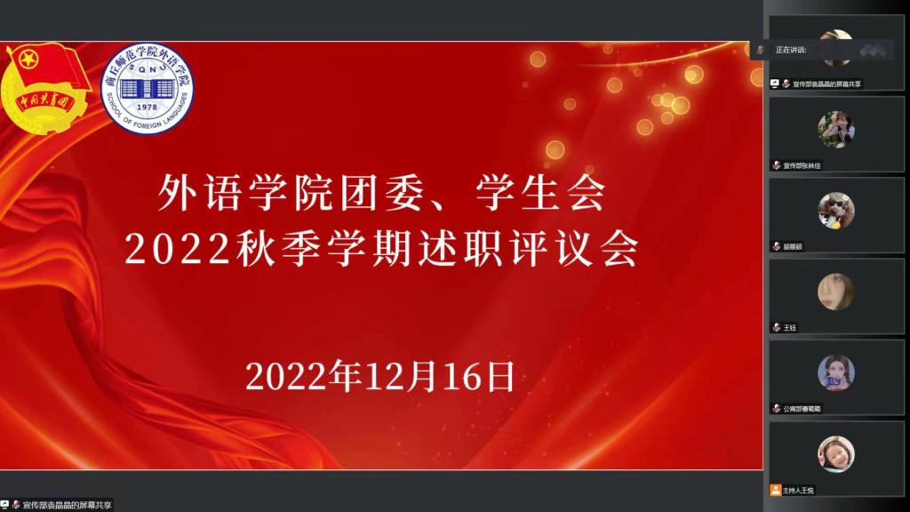 为了进一步加强william威廉中文团学骨干的综合素质,提升团委学生会工作人员的责任意识和服务意识,william威廉中文团委于2022年12月16日召开团委学生会2022年秋季学期述职评议会。william威廉中文团委书记赵蕊、学生会主席团成员及各部门负责人参加,会议由王悦主持。