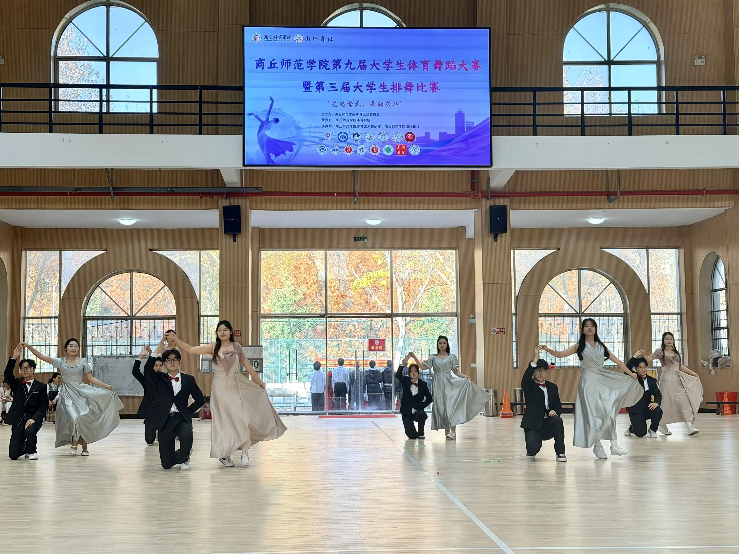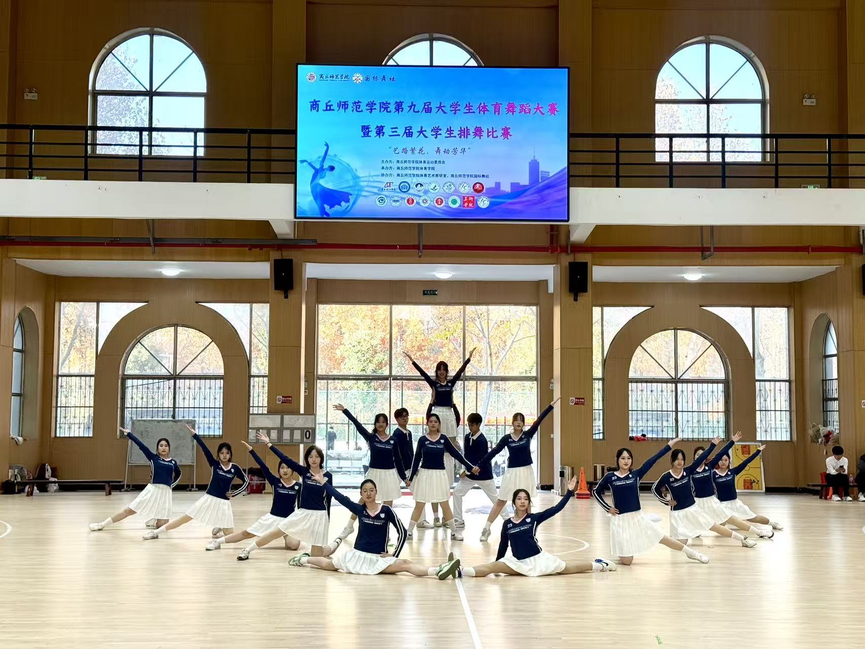 赛场上,华尔兹队伍身着整齐服装,伴随悠扬旋律舒展身姿,旋转、迈步间尽显优雅韵味,将古典舞的柔美与青春朝气完美融合;排舞队伍以“同心闪跃”为名,踏着明快节拍展现整齐划一的动作,队形变换流畅自然,饱满的热情与昂扬的状态感染了现场每一位观众,充分展现了外院学子全面发展的综合素质与积极向上的精神面貌。
