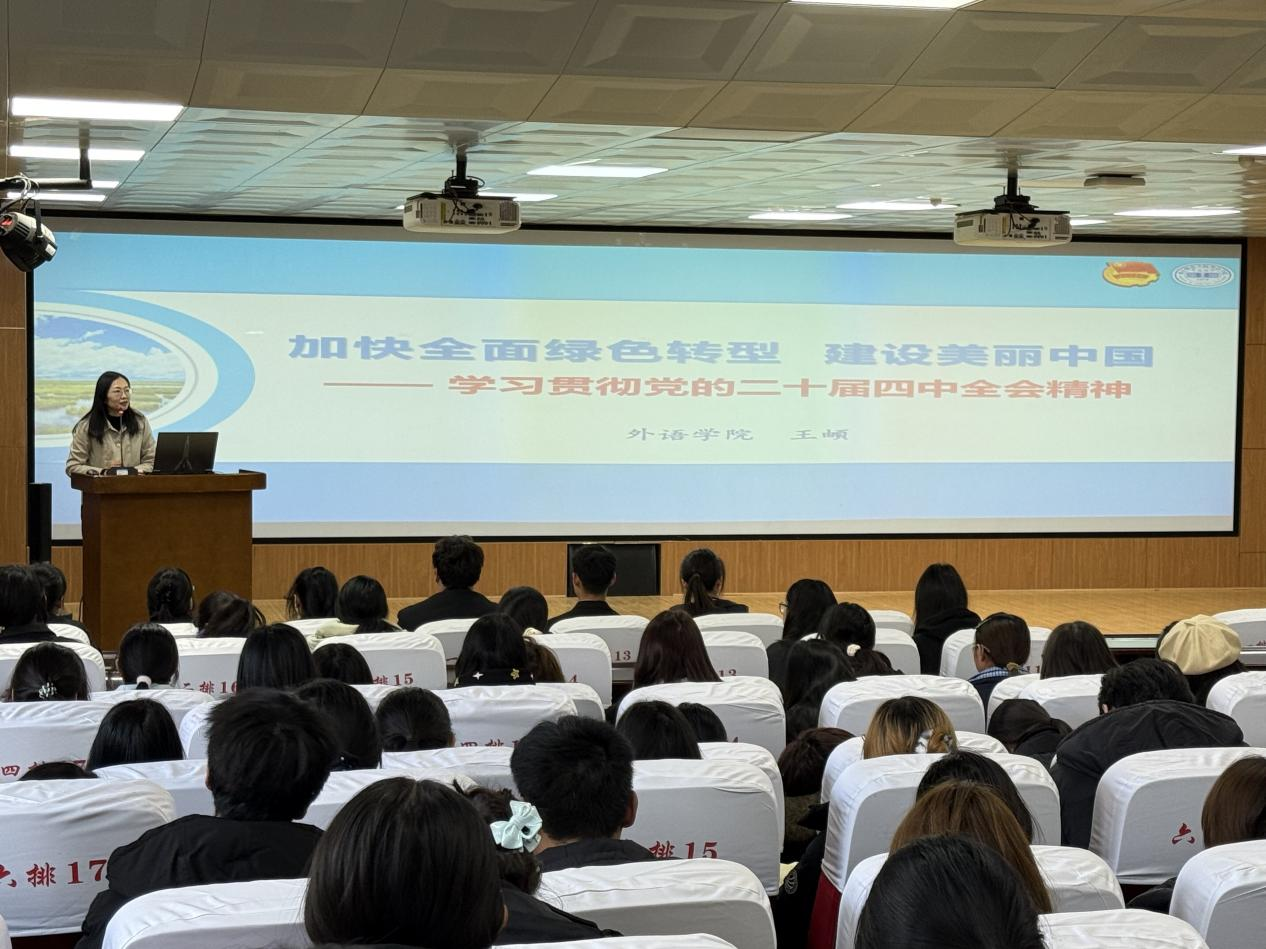 伴随着中国共产主义青年团团歌《光荣啊,中国共青团》,开班仪式圆满落下帷幕。开班仪式结束后,王頔以《加快全面绿色转型,建设美丽中国》为题作开班第一讲,从理论高度与实践层面深入阐释了生态文明建设的战略意义。王頔特别强调青年学子要立足专业优势,深刻理解绿色发展理念的时代内涵,在对外交流中积极讲好中国生态文明故事,展示中国在环境保护、绿色发展方面的成就与贡献。并鼓励学员们将绿色发展理念融入学习生活实践,在建设美丽中国的征程中贡献青春力量。