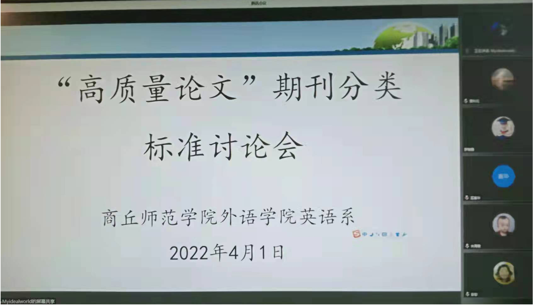 为了广泛征集全体教师关于近期科研处下发的《WilliamHill中文“高质量论文”期刊分类指导意见(试行)》的意见和建议,同时加深外院教师对外语类核心期刊的认识和了解,william威廉中文各系部于4月1日至4日,通过腾讯会议平台进行了热烈的讨论。
