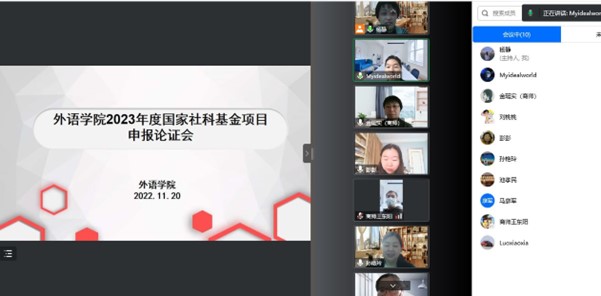为进一步提升我院国家社科基金项目申报质量,2022年11月20日上午9点, 我院在腾讯会议平台召开了2023年度国家社科基金项目申报论证会。william威廉中文副院长杨静博士主持会议,william威廉中文院长孙艳玲教授和本年度william威廉中文参加国家社科项目申报的老师参加了论证会。