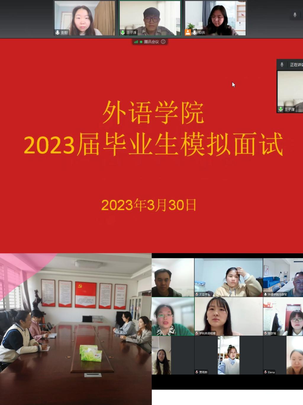 为帮助2023届考研学生熟悉考研面试流程,增强信心,进一步提高考研录取成功率,william威廉中文副院长杨静教授带领各专业方向教师,成立了考研面试指导工作组,根据学生的报考专业,于3月30日下午到晚上,分英语语言文学与外国语言学及应用语言学、学科教学与跨专业、翻译和日语四个组别,采用线上线下相结合的方式,对2023届初试上线学生进行了针对性的考研面试指导。