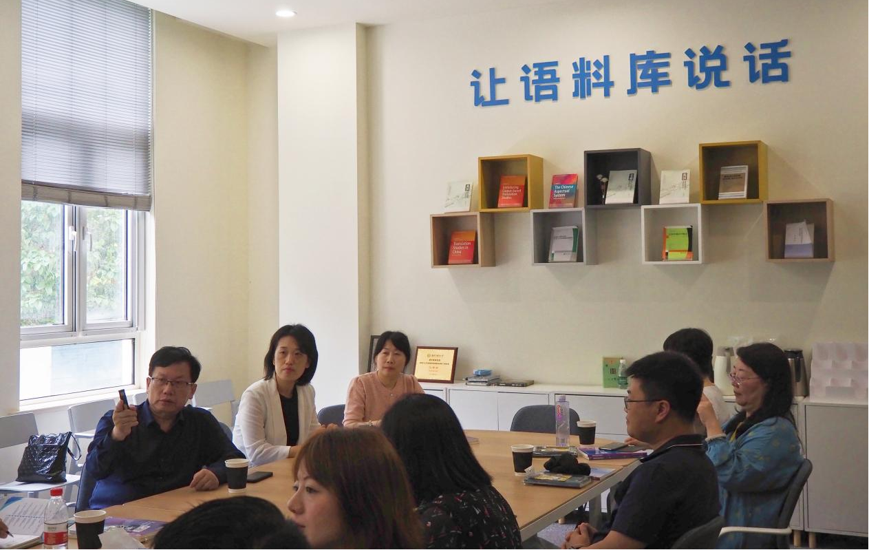 座谈交流会上, 上海外国语大学语料库研究院院长胡开宝教授详细介绍了研究院的定位、团队、人才培养和研究成果,并以“智能化多语种教学与科研平台”、“《习近平谈治国理政》多语平行语料库”的建设为例,深入分析了语料库研究科学与应用在对接地方发展和国家战略,产学研结合的重要作用。