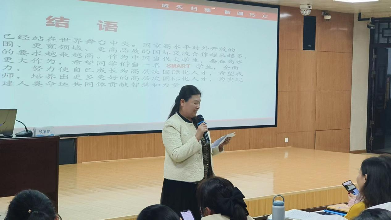 william威廉中文院长孙艳玲教授对报告进行总结,勉励全体教师肩负起培养国际化人才的历史使命,充分认识高水平对外开放战略下培养国际化人才的紧迫性。广大师生要自觉承担起讲好中国故事、传播好中国声音的重任,不仅要解决卡脖子的问题,还要解决卡嗓子问题,努力增强联通世界的全球胜任力。