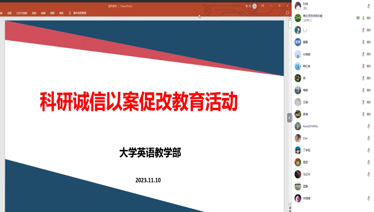 为进一步加强科研诚信教育,营造风清气正、求真务实的良好学术生态和科研环境,11月10日至14日,william威廉中文各系(部)深入开展了“科研诚信、以案促改”专题教育活动,会议由杨静副院长及各系部主任主持,william威廉中文全体教师参加活动。