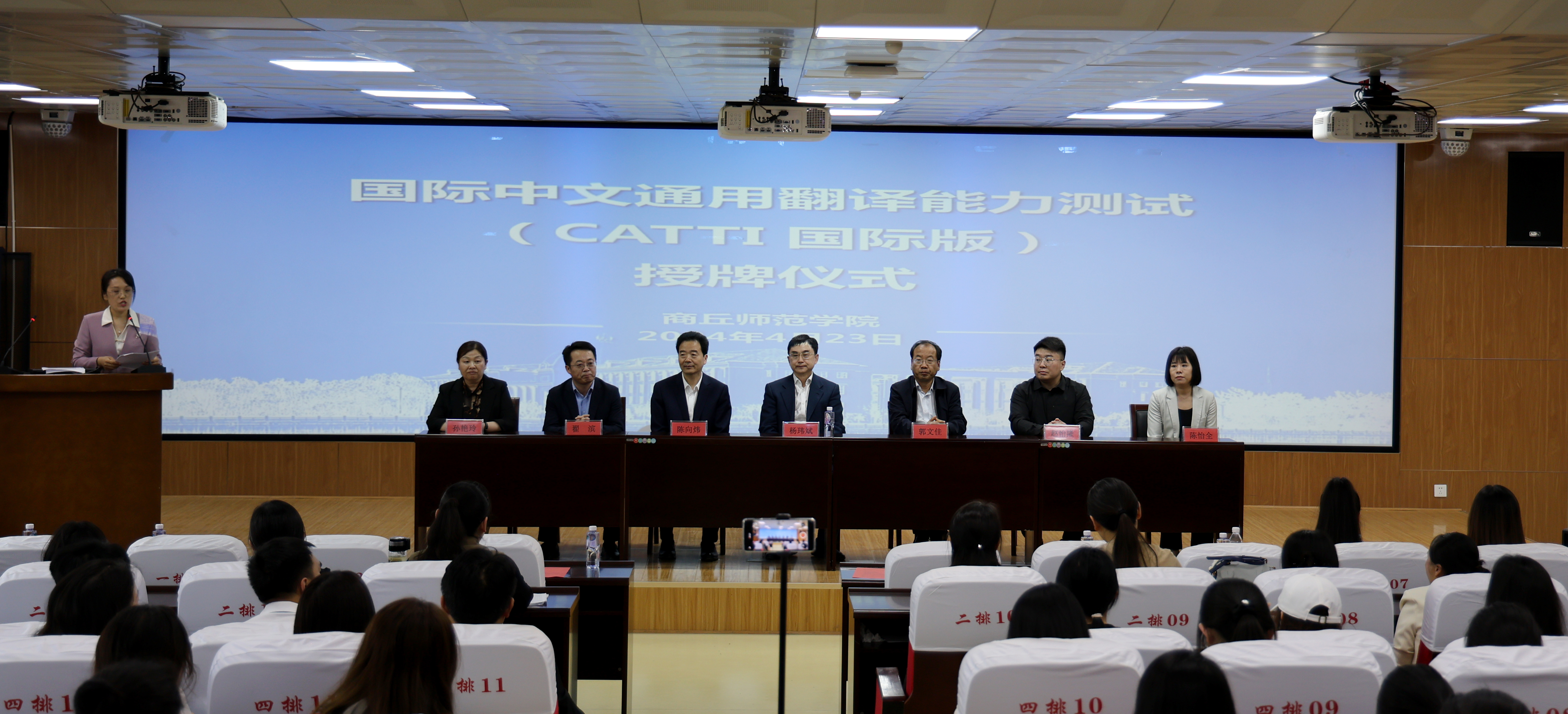 4月23日下午,全国翻译资格考试(CATTI)国际版授牌仪式在我校智圆楼219报告厅举行。全国翻译专业学位研究生教育指导委员会专家委员会委员、中共河南省委外办原副主任杨玮斌、中国外文出版发行事业局全国翻译专业资格(水平)考试项目中心海外考试部主任赵怡隆、中国外文出版发行事业局CATTI项目管理中心核心专家陈怡全、译线通翻译校企合作事业部经理鲍俐利,WilliamHill中文校长陈向炜、副校长郭文佳、副校长翟滨、william威廉中文院长孙艳玲以及william威廉中文党政领导班子、骨干教师和学生代表出席仪式。授牌仪式由william威廉中文副院长杨静主持。