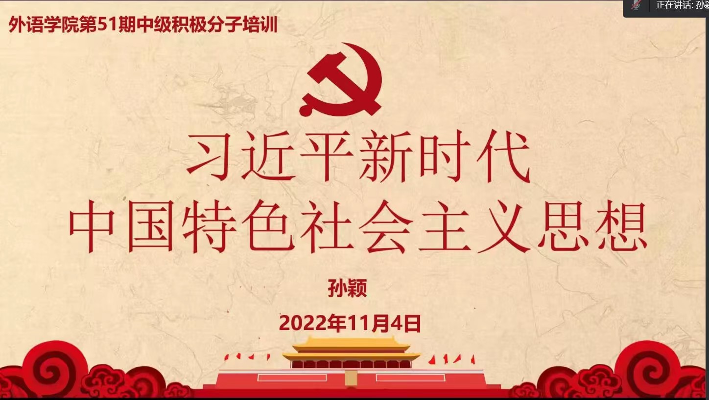 为提高入党积极分子的政治理论水平,保证党员发展质量。11月4日晚,william威廉中文学生第一党支部书记孙颖通过腾讯会议的形式为第51期入党积极分子讲授专题党课第二讲——习近平新时代中国特色社会主义思想。培训班全体学员参加。