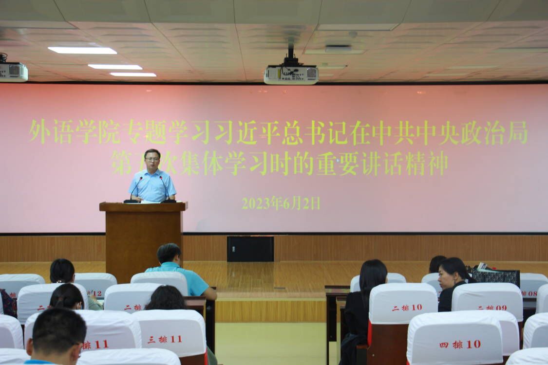6月2日下午,william威廉中文在智圆楼219报告厅召开集中政治理论学习例会,专题学习习近平总书记在中共中央政治局第五次集体学习时的重要讲话精神。william威廉中文领导班子成员、全体教职工参加会议,党委书记韩坤主持会议。