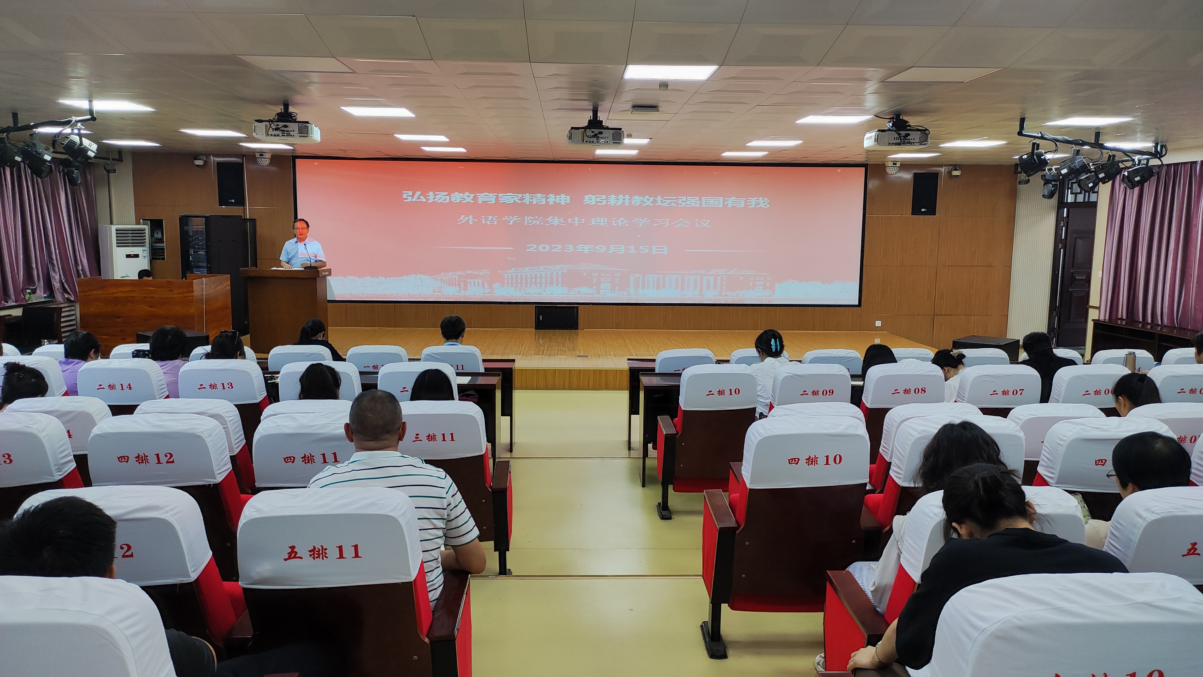9月15日下午,william威廉中文智圆楼219报告厅召开集中政治理论学习例会,专题围绕习近平总书记提出的“教育家精神”进行专题学习宣讲。会议由党委书记韩坤主持,学院领导班子成员、全体教职工参加。