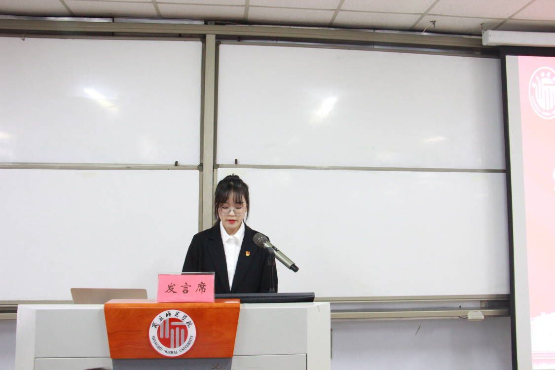 英语23-6班李可盈作为新生代表发言,分享了自己的学习生活感悟,表示要在商丘师院怀抱梦想、脚踏实地,以奋斗姿态激扬青春、砥砺青春,力争成为商师骄子、外院荣光。