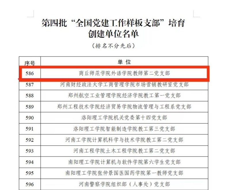 近日,教育部办公厅公布了第四批全国党建工作示范高校、标杆院系、样板支部培育创建单位名单,我院教师第二党支部入选“全国党建工作样板支部”培育创建单位。