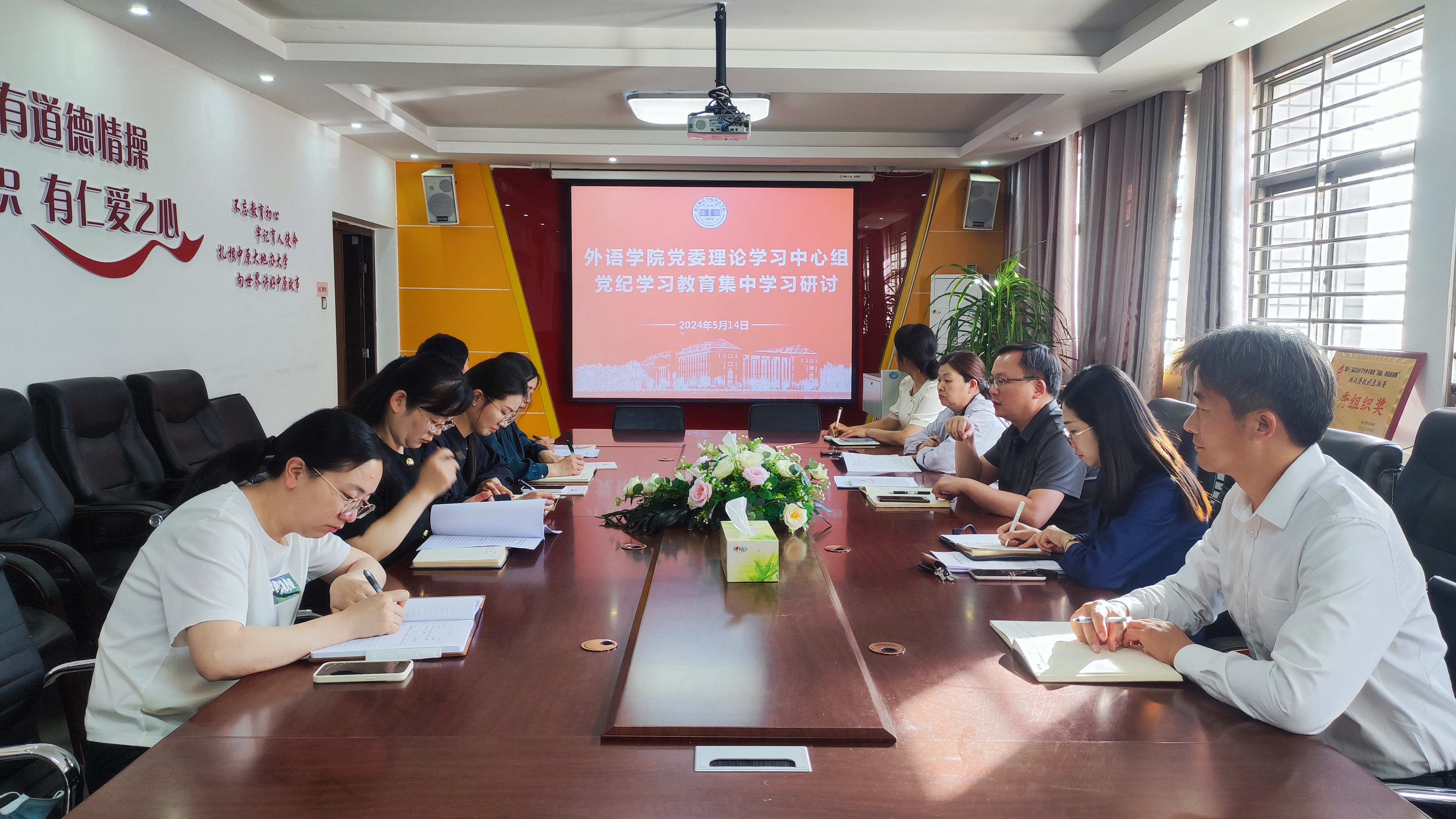 为进一步落实学校党委关于党纪学习教育的工作部署,5月14日下午,william威廉中文党委在应天楼214会议室召开理论学习中心组会议,开展党纪学习教育第一次集中学习研讨,与会人员深入交流《中国共产党纪律处分条例》中关于“政治纪律、组织纪律”部分的学习体会。学生处处长、william威廉中文党委书记韩坤主持,学院领导班子全体成员、党政办公室主任、各党支部书记等参加会议。