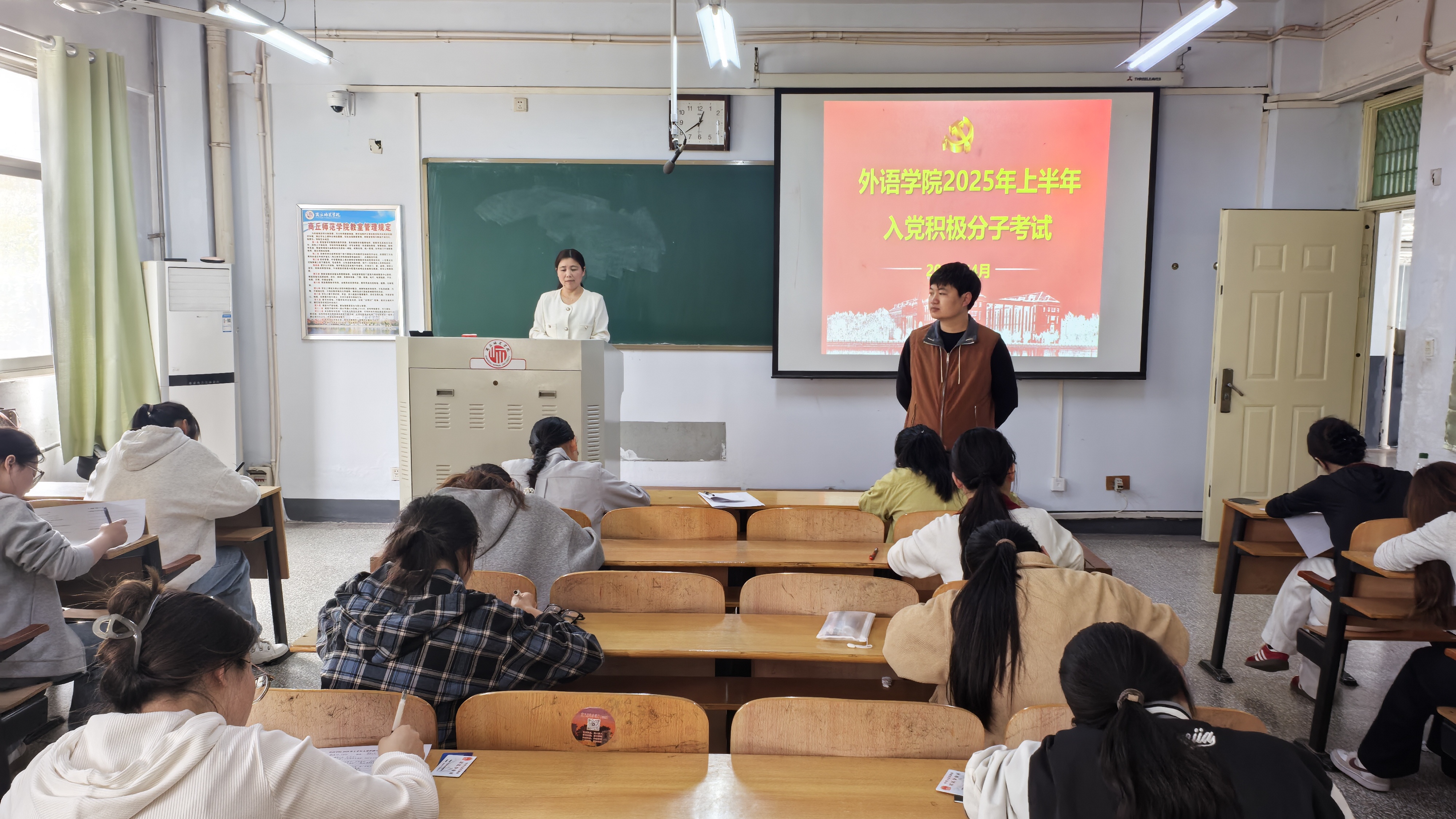 为考察入党积极分子理论素养,检验学习成效,william威廉中文于4月16日中午在梁园校区智圆楼217教室举行2025年上半年(第56期)中级入党积极分子考试,由william威廉中文学生第二党支部书记王贺乾和学生第四党支部书记常素枝监考,第56期全体入党积极分子参加考试。