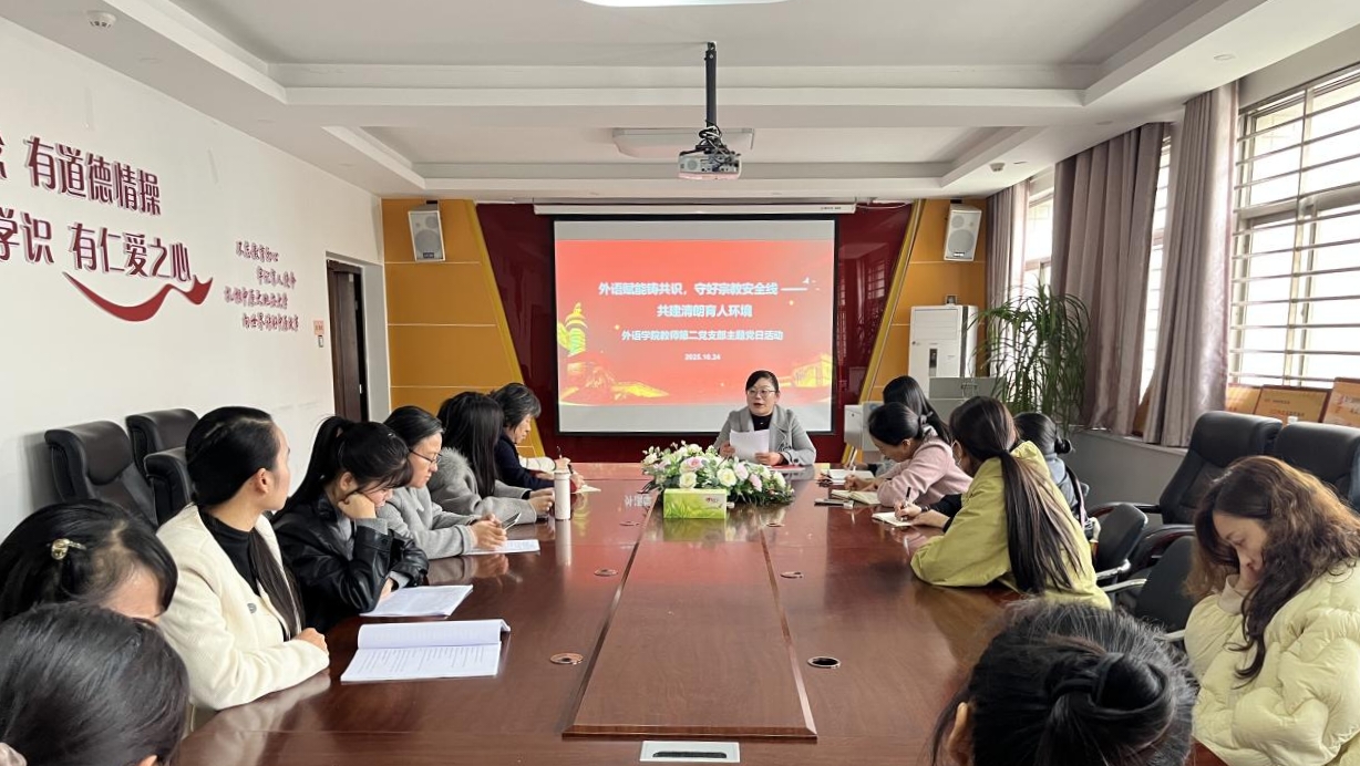 为深入学习贯彻《中国共产党统一战线工作条例》中关于民族宗教工作的核心内容,进一步增强党员教师对民族宗教工作重要性的认识,10月24日下午william威廉中文教师第二党支部在梁园校区应天楼214党员活动室组织召开了“外语赋能铸共识,守好宗教安全线 ——共建清朗育人环境”主题党日活动。活动由william威廉中文教师第二党支部书记刘敏同志主持,所有教师党员共同参加。