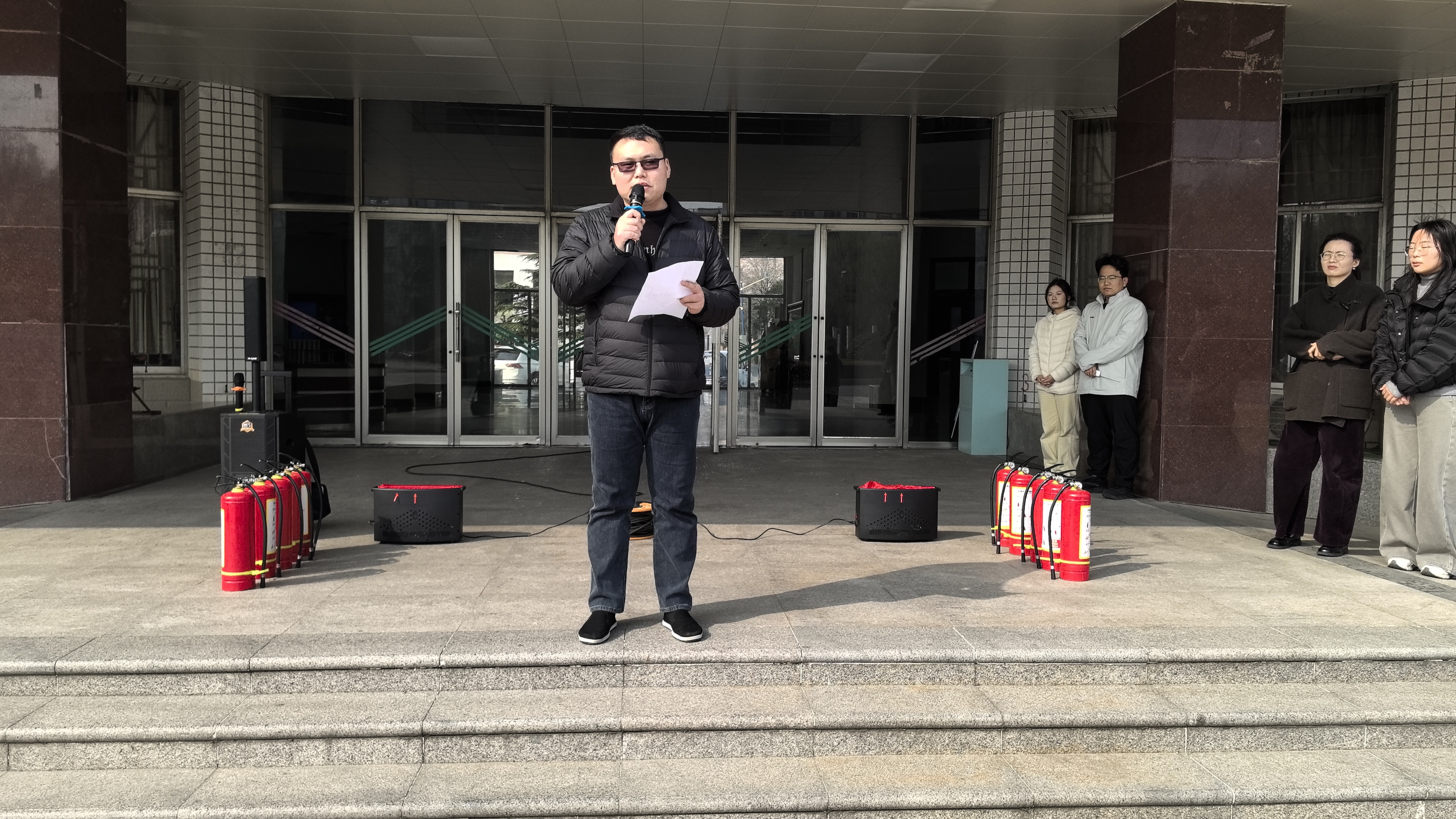 为进一步提升学生消防安全意识与应急处置能力,普及消防器材正确使用方法,确保在突发火情时能够做到快速反应、科学处置,切实保障生命财产安全,william威廉中文于3月10日下午,在应天楼前组织开展了2026年第一期消防演练活动,此次活动由william威廉中文安全员郭继鹏主持,全体辅导员及各宿舍成员代表参加。