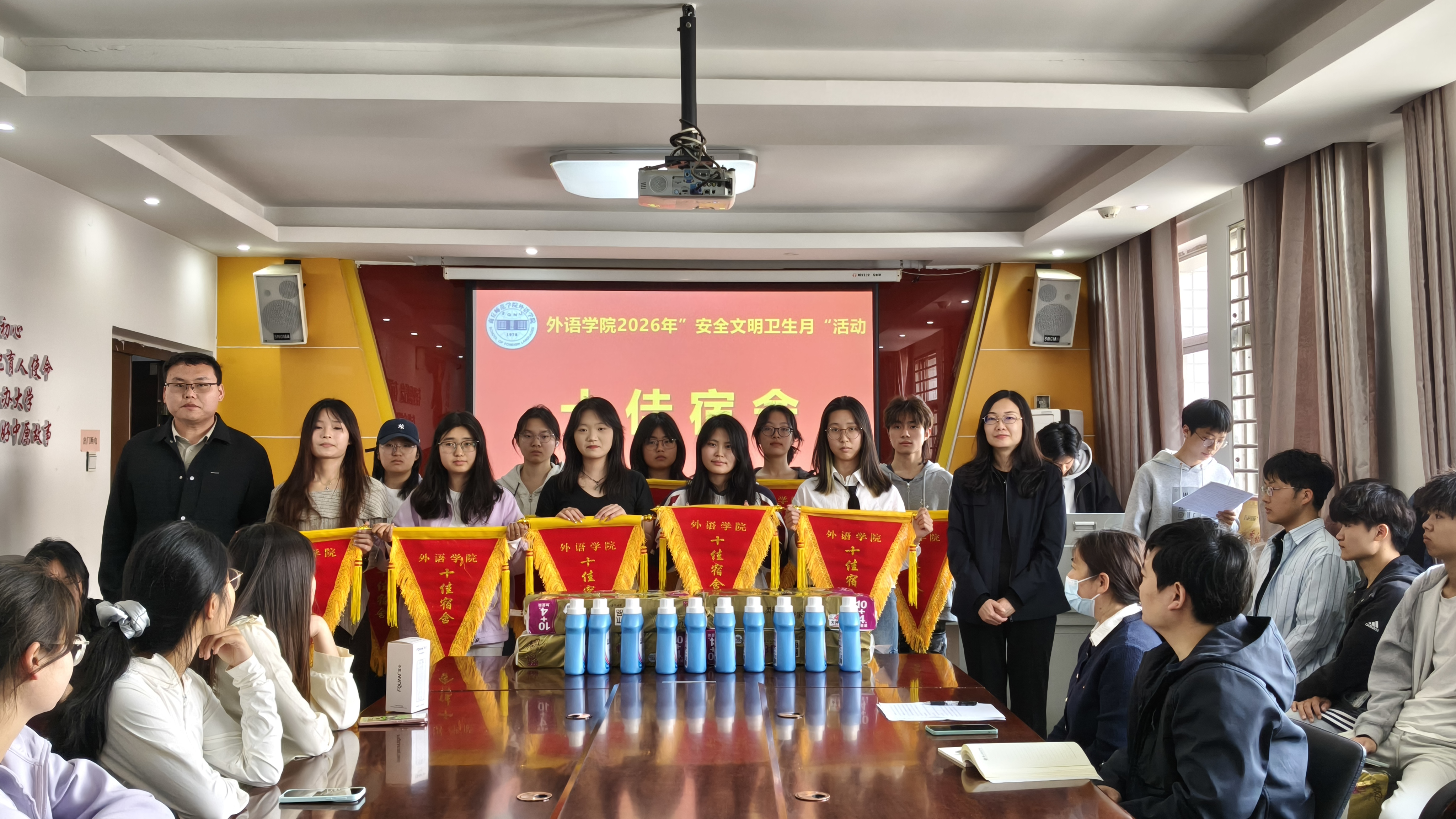 最后,王頔进行总结,她对同学们在各项活动中的积极参与和辛勤付出表示肯定,对受到表彰的集体和个人表示祝贺,她强调,开展“安全文明卫生月”活动,是学院落实立德树人根本任务、加强学生综合素质培养的重要举措,更是打造平安、文明、绿色校园的具体实践。同时,她就宿舍安全管理、学生文明素养提升、良好卫生习惯养成等方面提出明确要求,叮嘱同学们以此次活动为契机,将安全意识、文明理念、卫生习惯内化于心、外化于行,把责任意识扛在肩上、落到实处,努力成长为有理想、敢担当、能吃苦、肯奋斗的新时代外语人才。