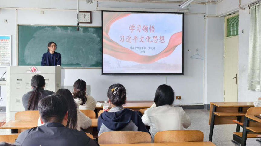 孙颖首先系统梳理了习近平文化思想的形成过程,从时代背景、实践基础、理论来源等方面进行了讲解,帮助学员们理解这一思想的历史逻辑和现实意义。并围绕习近平文化思想的丰富内涵展开详细阐释,重点讲解了社会主义核心价值观以及中华优秀传统文化创造性转化、创新性发展等内容。她强调,作为外语专业的学生,要深刻认识文化的地位和作用,增强文化自觉,坚定文化自信。