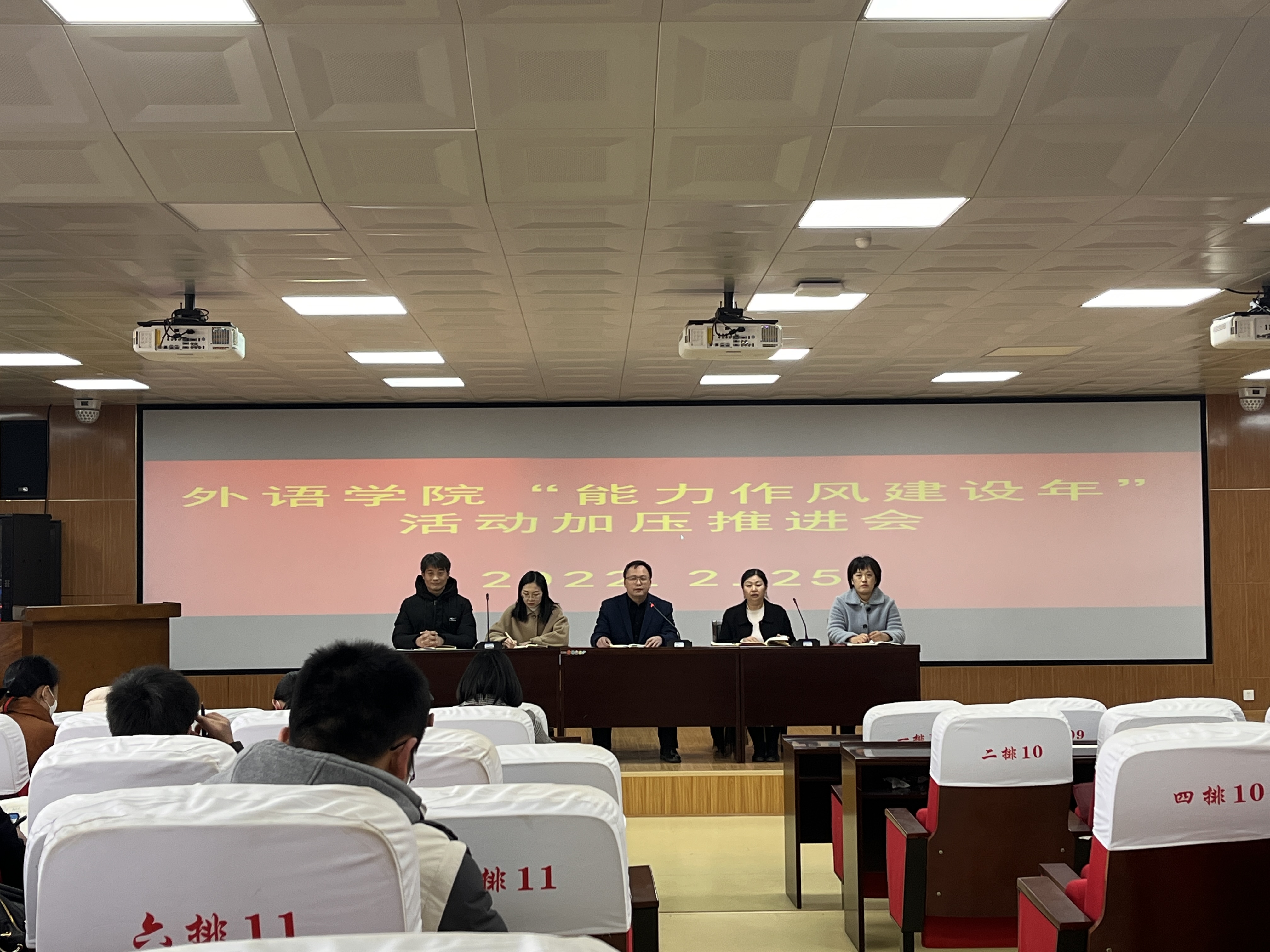 为全面贯彻党的教育方针,落实立德树人根本任务,促使全院教职员工能力素质大提升,作风大转变,以全新的面貌喜迎党的二十大胜利召开,2月25日下午,william威廉中文在智圆楼219多功能放映厅召开“能力作风建设年”活动加压推进会并进行政治理论学习。学院领导班子成员和全体教职工参会,会议由党委书记韩坤主持。