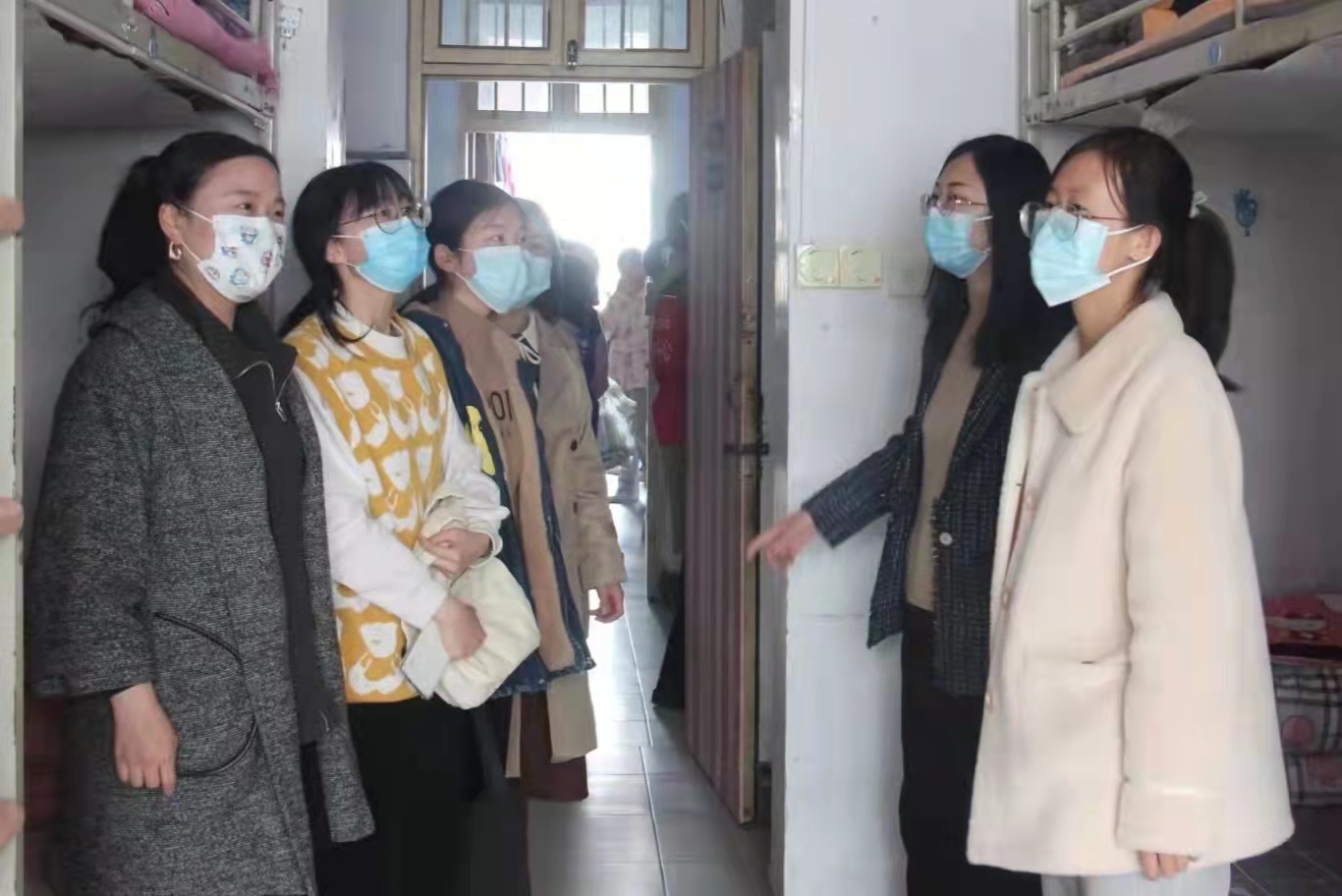 在检查中,韩书记和王书记重点强调一定要注意宿舍安全和整洁,养成良好的宿舍卫生习惯,并与同学们亲切交谈,叮嘱同学们在新学期要抓住学习机会、明确目标,以积极、坚韧的态度去面对学习和生活中可能出现的各种问题,同时要珍惜与室友的友谊,宿舍成员之间要相互鼓励,共同进步,情同亲人,以校为家。