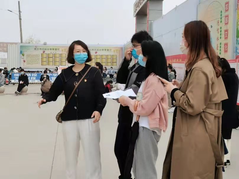 考前和学生亲切交谈缓解同学们焦虑的郗望老师。