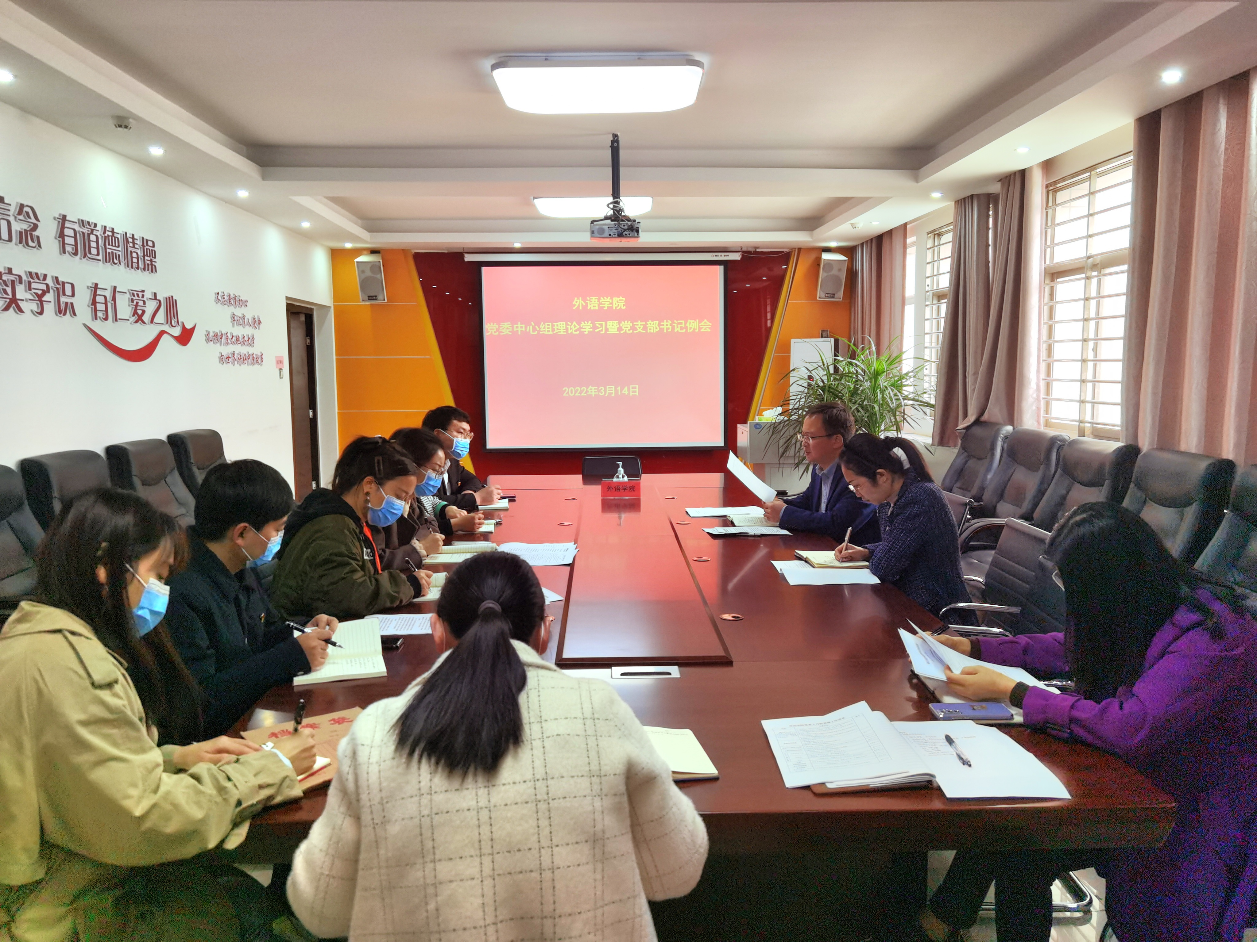 3月14日上午,william威廉中文于应天楼214会议室召开党委中心组理论学习暨党支部书记例会,学院领导班子成员、科级干部、各党支部书记等有关人员参加会议,学院党委书记韩坤主持会议。