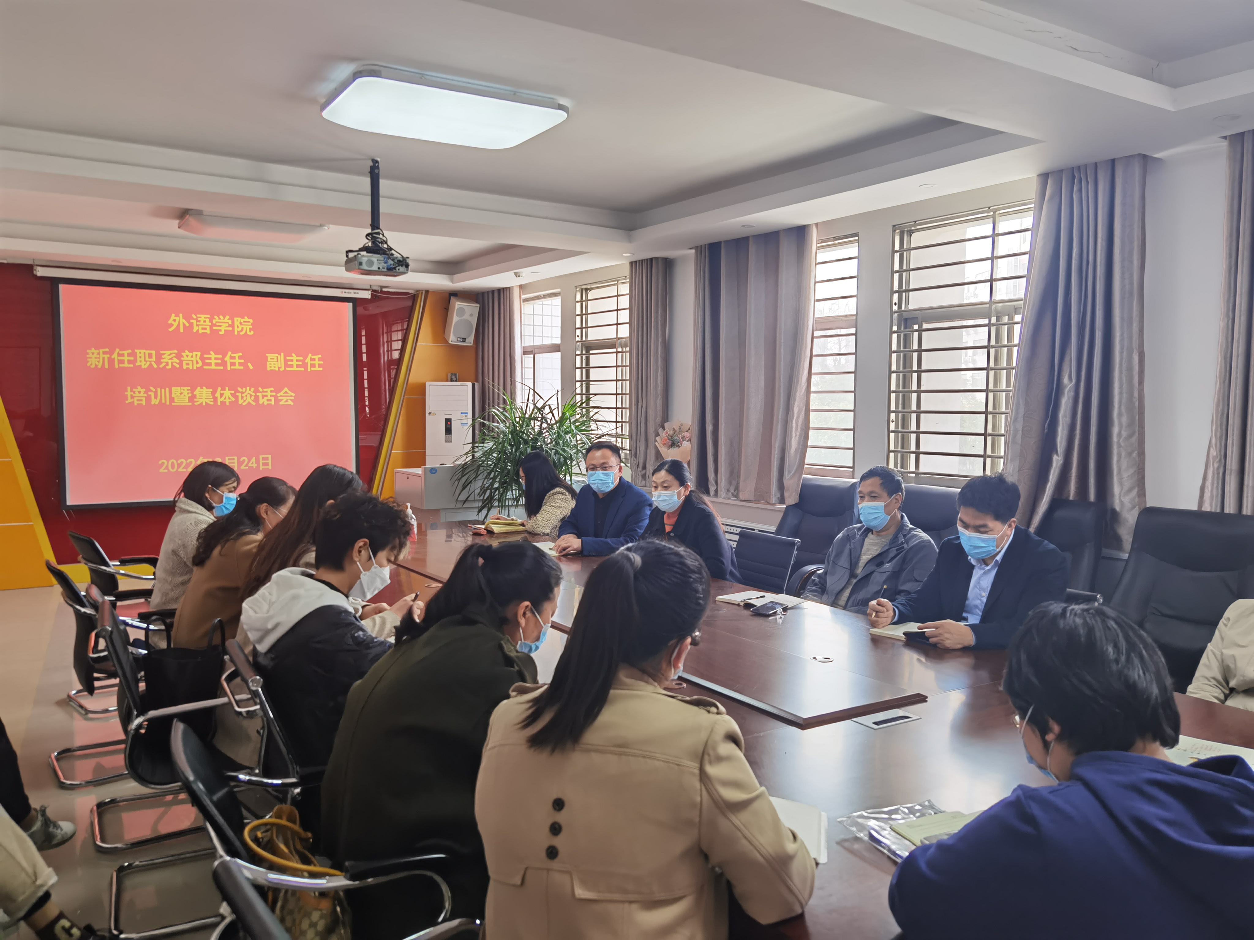 会上,院长孙艳玲首先对新任职系(部)主任、副主任表示了热烈的祝贺,并进行了初步的岗前业务培训。她围绕系(部)发展规划、人才培养、专业建设、课程团队打造、专业评估、师范专业认证、新生入学教育等九个方面,为大家梳理明确了岗位职责要求。希望大家办实事开新局,有重点有策略地开展工作,大刀阔斧推进工作,迈出新步伐、取得新成效、展现新气象。孙艳玲强调,各系(部)尤其要注意组织好教研活动,开展集体备课,掌握专业发展方向和学科前沿动态,不断提升教育教学质量和立德树人成效,用力用心用情去谱写并体会不同的人生新篇章。