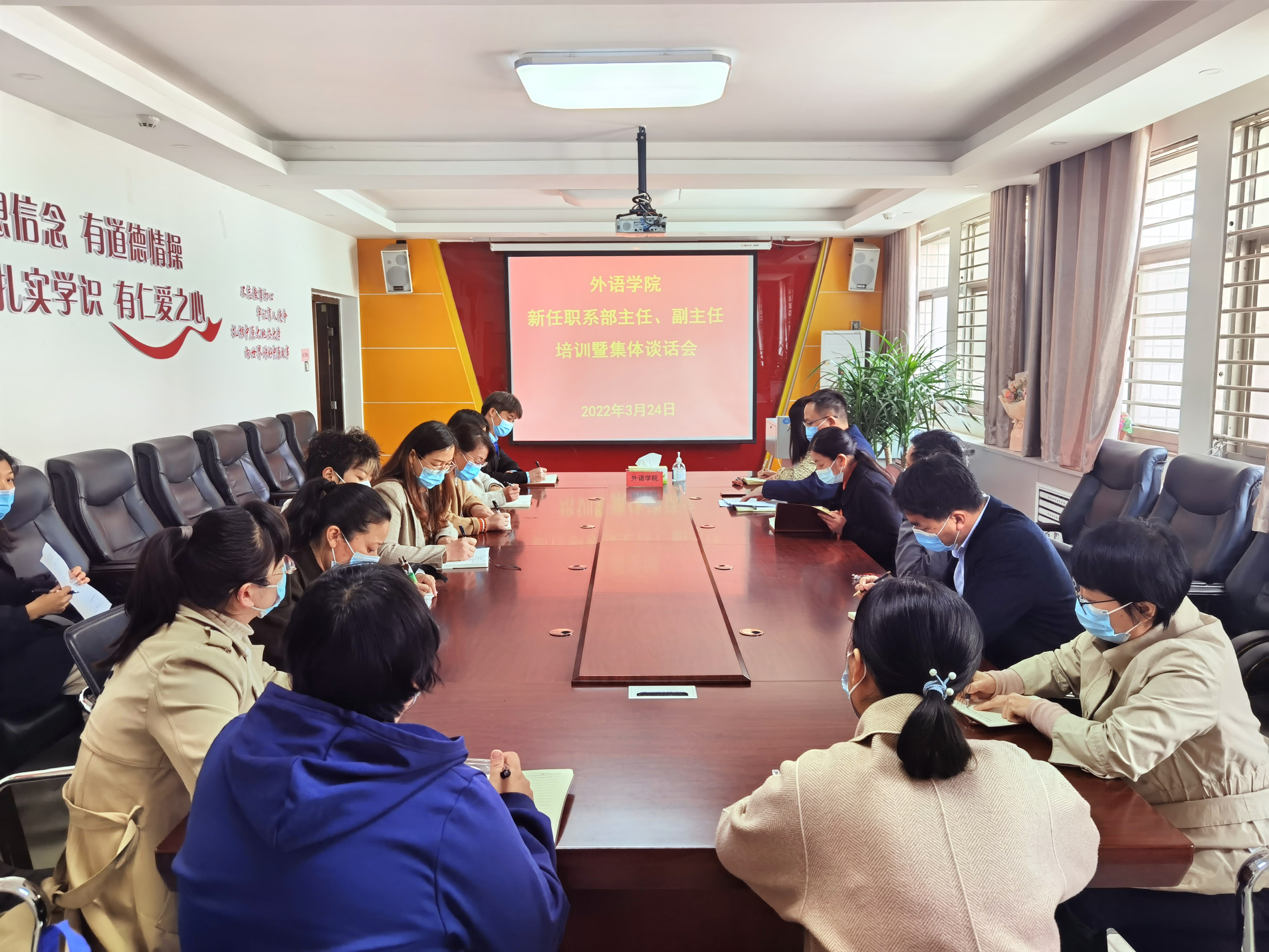 3月24日下午,我院在应天楼214会议室召开新任职系(部)主任副主任培训暨集体谈话会,学院领导班子成员、全体新任职系(部)主任副主任、科级干部参加会议。会议由学院党委书记韩坤主持。