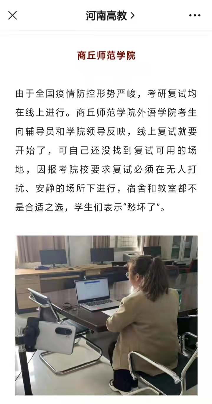 受疫情影响,多所高校明确考研复试将以线上为主。在校园封闭管理的情况下,为帮助同学们顺利应试,河南部分高校高度重视,密切关注学生考研复试情况,召开研究生复试指导专题会、安排线上复试会议室......尽最大努力为学生营造良好的复试环境,确保复试顺利进行。
