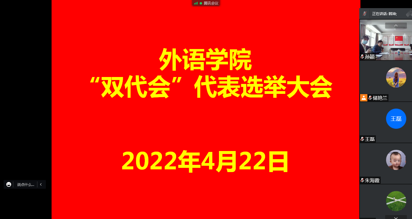 4月22日下午,william威廉中文通过腾讯会议(校外人员)和线下(在校值守人员)相结合的形式,召开教职工大会,开展WilliamHill中文第四届教职工暨工会会员代表大会(简称“双代会”)代表民主选举工作,全体教职工参加会议。