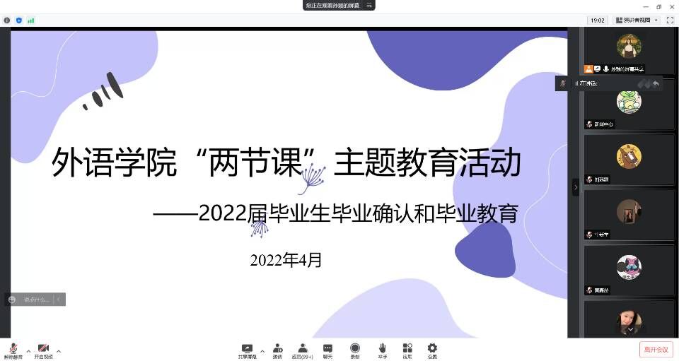 为增强贷款毕业生的诚信还款意识,加强毕业生诚信教育和贷后管理工作,4月28日晚,william威廉中文通过腾讯会议的形式召开了2022届贷款毕业生毕业确认和毕业教育会议,会议由william威廉中文毕业班辅导员孙颖主持,全体2022届毕业生参会。