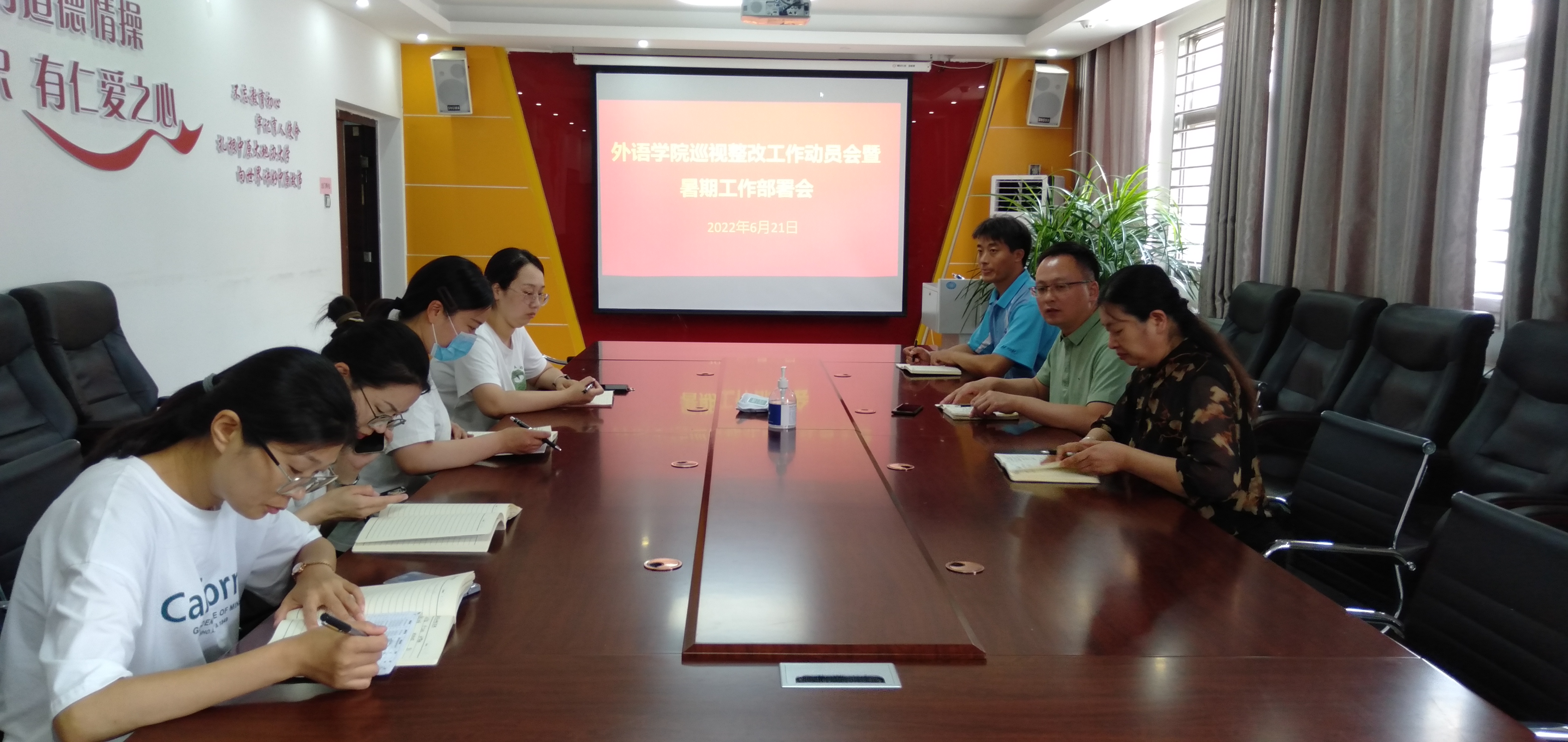 院长孙艳玲传达了6月17日学校全体中层干部会议精神,并就暑期重点工作作了安排部署。她总结梳理了2022年上半年工作成绩与不足,要求大家积极谋划下学期有关工作,并强调全体教职工要充分利用暑期时间,扎实做好英语师范专业认证前期材料撰写及资料整理、招生咨询宣传、实验室论证建设、科研项目申报等重点工作。