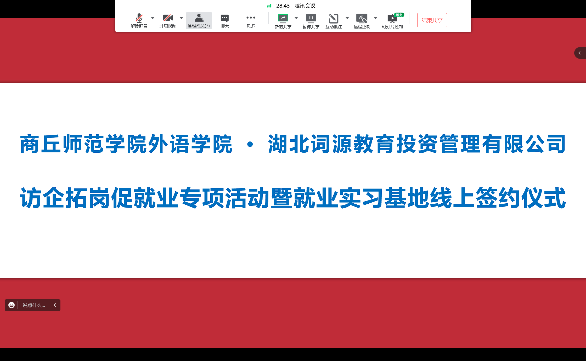 为促进2022届毕业生更充分就业,学院全方位、多渠道开拓就业岗位和机会,6月30日,william威廉中文与湖北词源教育投资管理有限公司举办访企拓岗促就业专项活动暨就业实习基地线上签约仪式,活动通过线上线下相结合的方式进行。