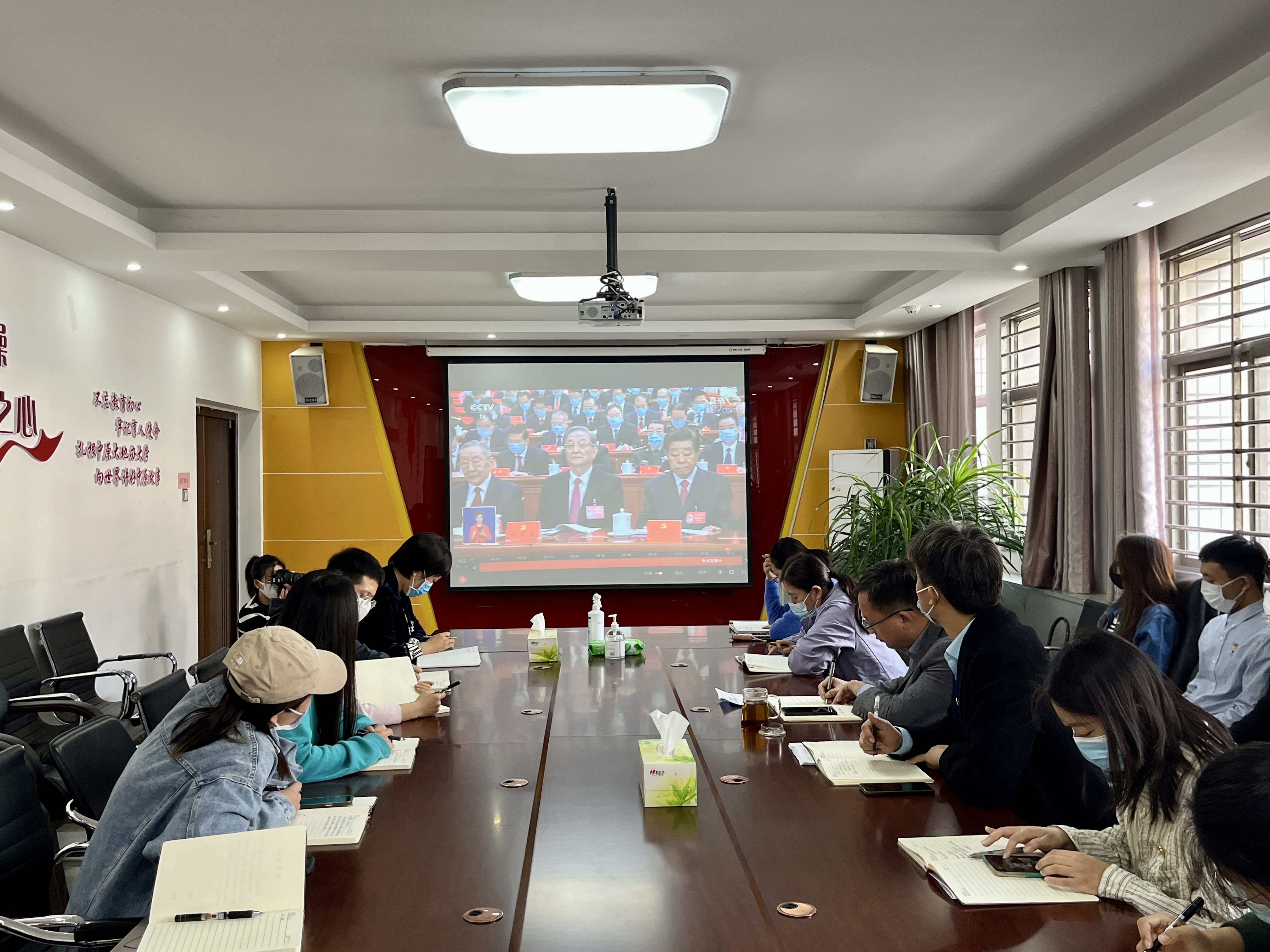 10月16日上午10时,中国共产党第二十次全国代表大会在北京人民大会堂开幕。william威廉中文广大师生通过电视、手机、网络等多种形式收听收看大会盛况。william威廉中文党委理论学习中心组成员在214会议室集中收看开幕会直播,认真聆听报告。