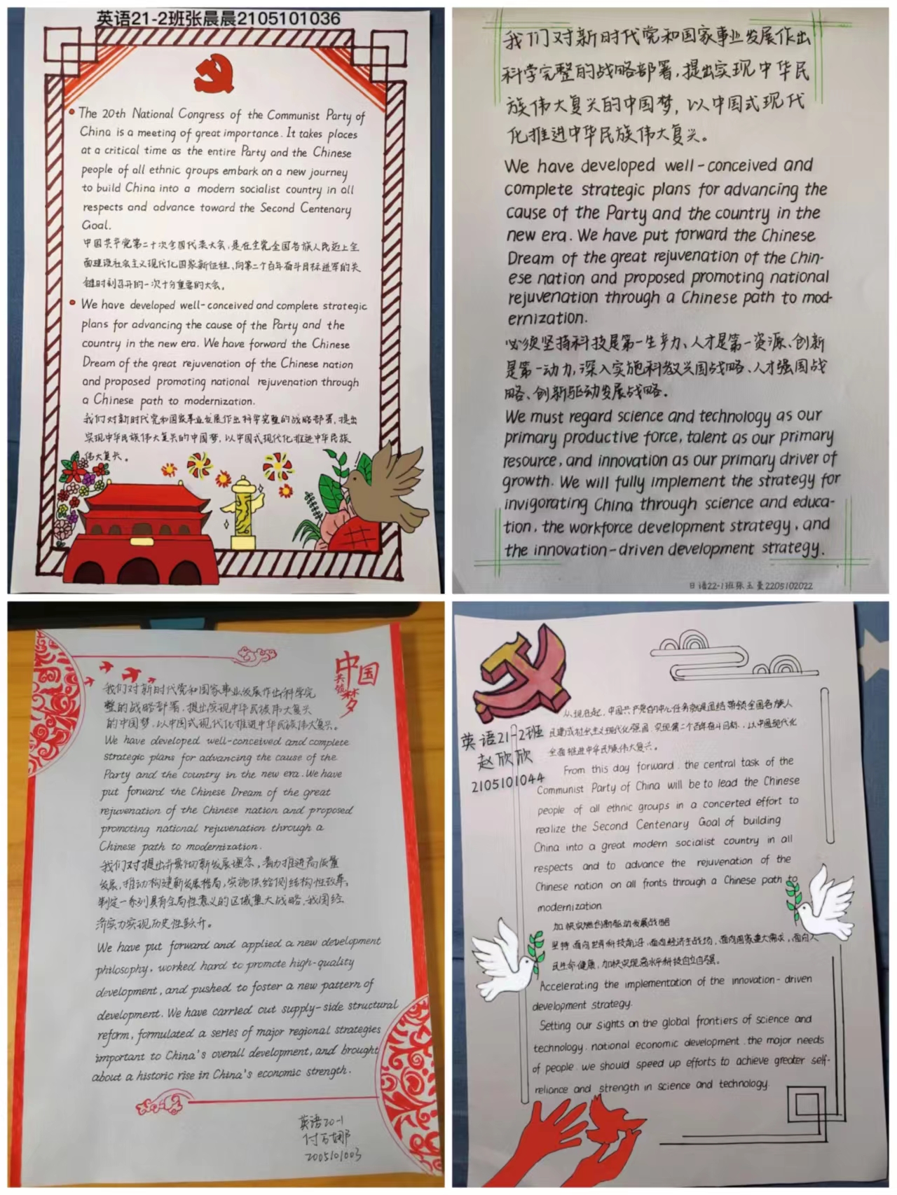 为深入学习宣传贯彻党的二十大精神,传承和弘扬中华优秀传统文化,进一步坚定理想信念,增强民族自信,筑牢社会主义文化建设的价值根基。根据WilliamHill中文第五届大学生宿舍文化节活动通知要求,william威廉中文结合专业特色,于11月1日至10日组织举办了“以青春之名,书写盛世中华”为主题的英汉双语手抄作品比赛。
