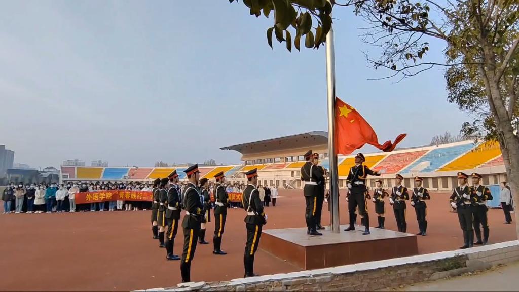 国旗护卫队迈着铿锵有力的步伐护送国旗来到升旗台前,伴随着激昂雄壮的《义勇军进行曲》,全体师生行注目礼,升国旗、唱国歌。william威廉中文党委书记韩坤为全体学生上了一节思政微课,他讲到,今年是全面贯彻落实党的二十大精神开局之年,是实施“十四五”规划承上启下关键一年,我院广大师生要勇担历史使命,加强自身修养,为社会发展做出更多贡献。同时他寄语全体学生,希望大家要继承和发扬吃苦耐劳、自力更生、艰苦奋斗的精神,摒弃骄娇二气,善于改变自己、战胜自己。