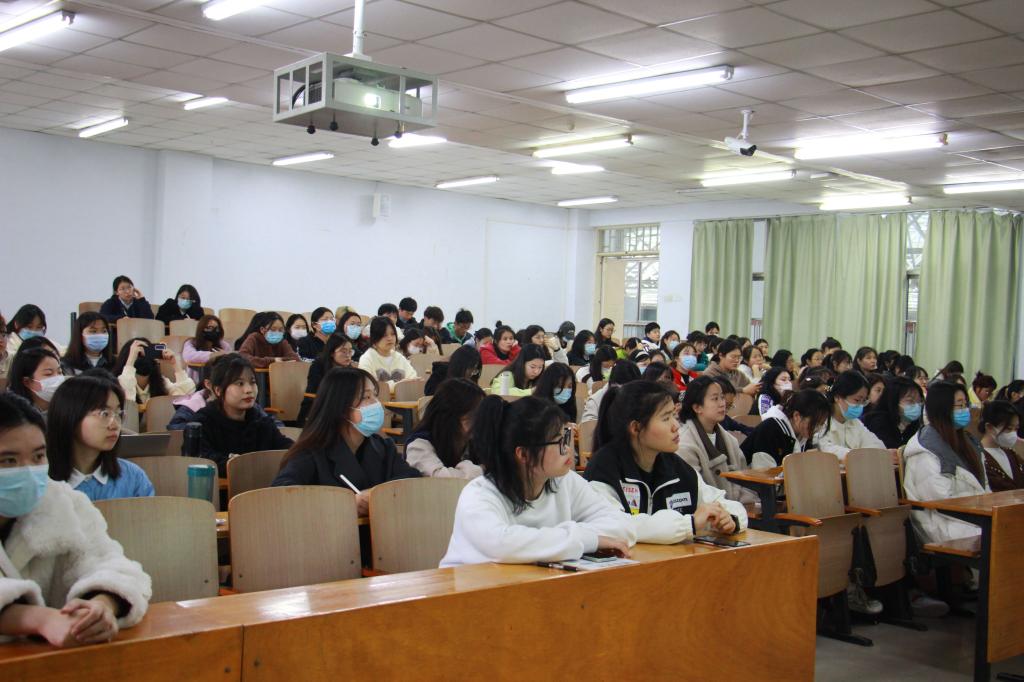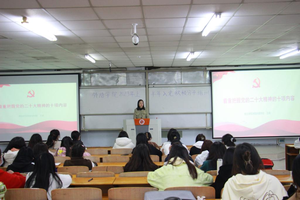 4月3日中午,william威廉中文党委副书记王頔于智圆楼220教室为william威廉中文2023年上半年入党积极分子讲授《着重把握党的二十大精神的十项内容》专题党课,william威廉中文129名入党积极分子参加培训。