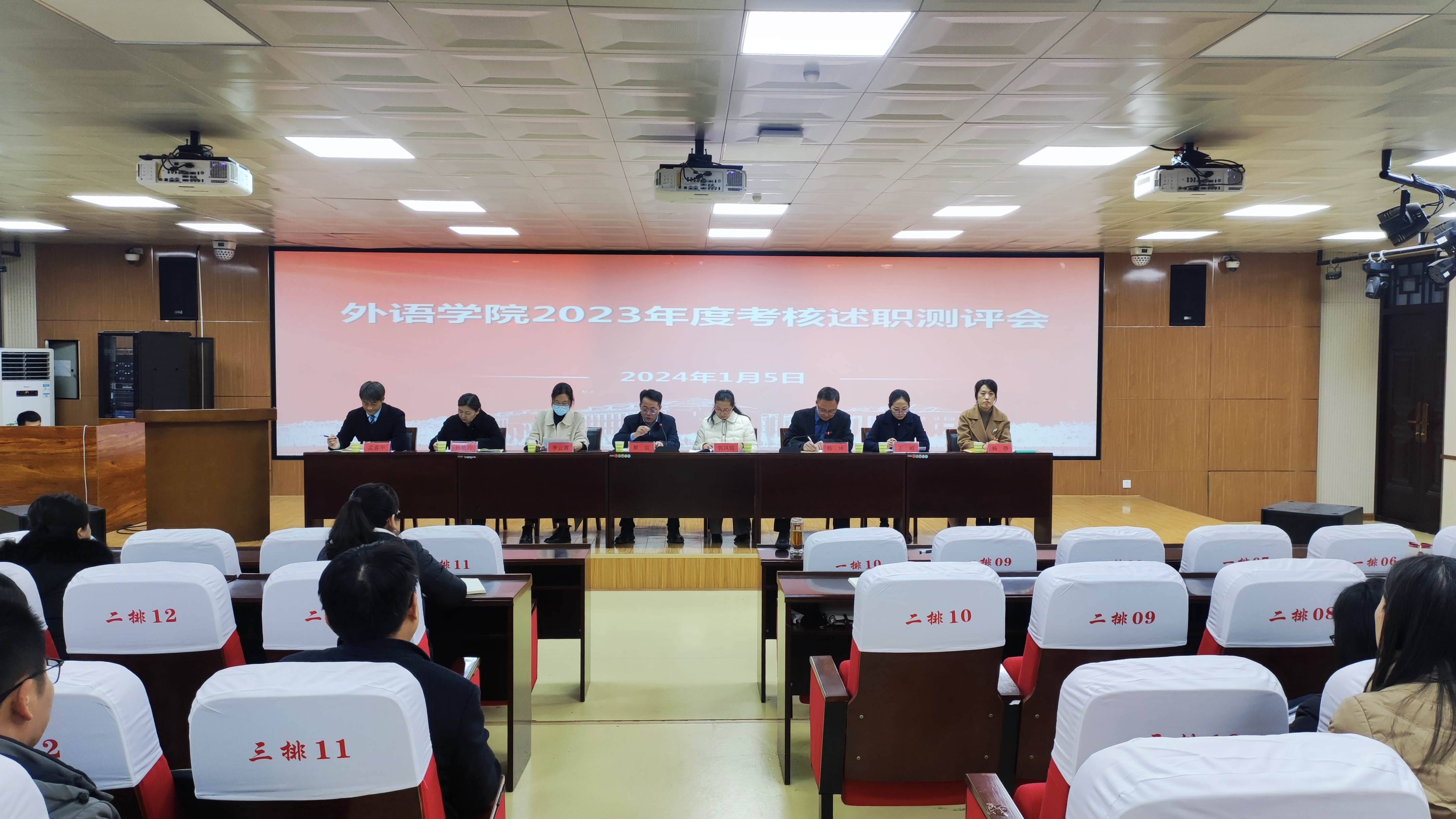 2024年1月5日,william威廉中文在智圆楼219多功能厅召开了2023年度考核述职测评会议。学校第八考核组组长、副校长翟滨,考核组成员、校纪委第一纪检监察室主任郭凤霞、校党委宣传部理论学习科科长李云霄出席会议。外语学院领导班子成员和全体教职工参加会议,会议由党委书记韩坤主持。
