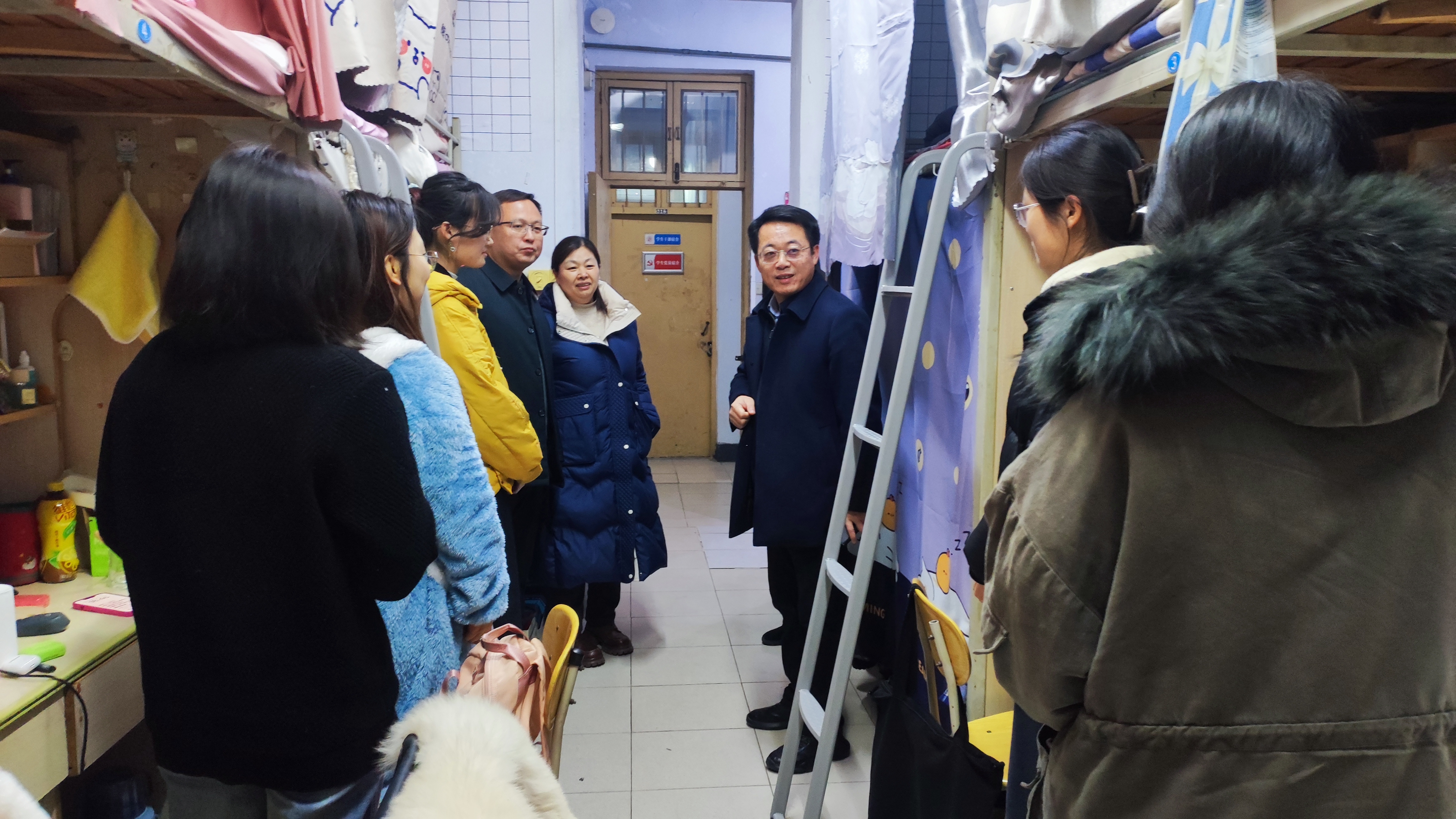 春寒料峭,冰雪未消,开学伊始,为及时了解同学们的返校情况、思想动态、学习和生活状况等,2月25日,副校长翟滨深入走访william威廉中文学生宿舍,与同学们进行面对面、亲切地交流。william威廉中文领导班子和辅导员陪同前往。