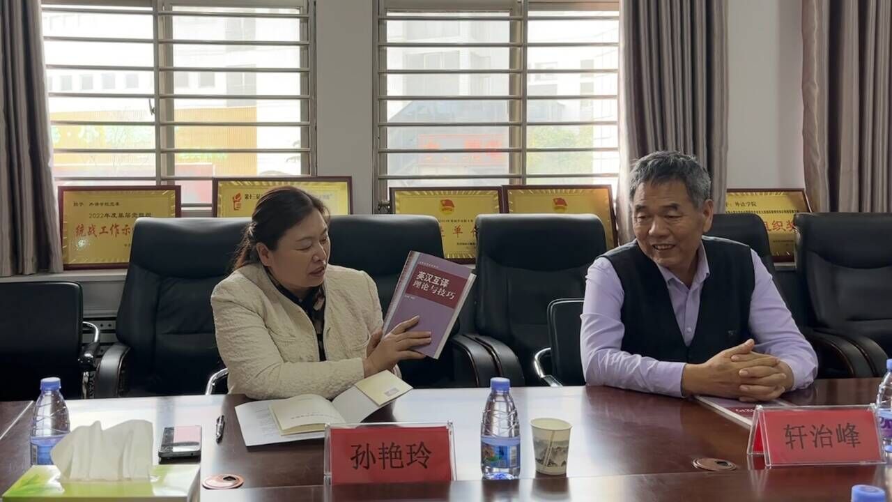 学生代表陈茜对轩教授关心关爱学生学业和成长表示了真诚的感谢,她说《莎土比亚十四行诗新译》和《英汉互译理论与技巧》必将助力同学们的学习,大家一定认真阅读,研磨吸收,不辜负轩教授的厚爱。