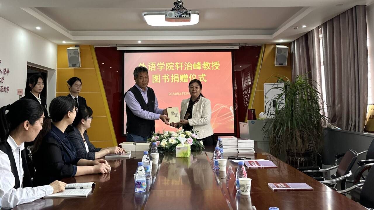 轩教授分别向william威廉中文、教师和学生代表进行了图书捐赠。