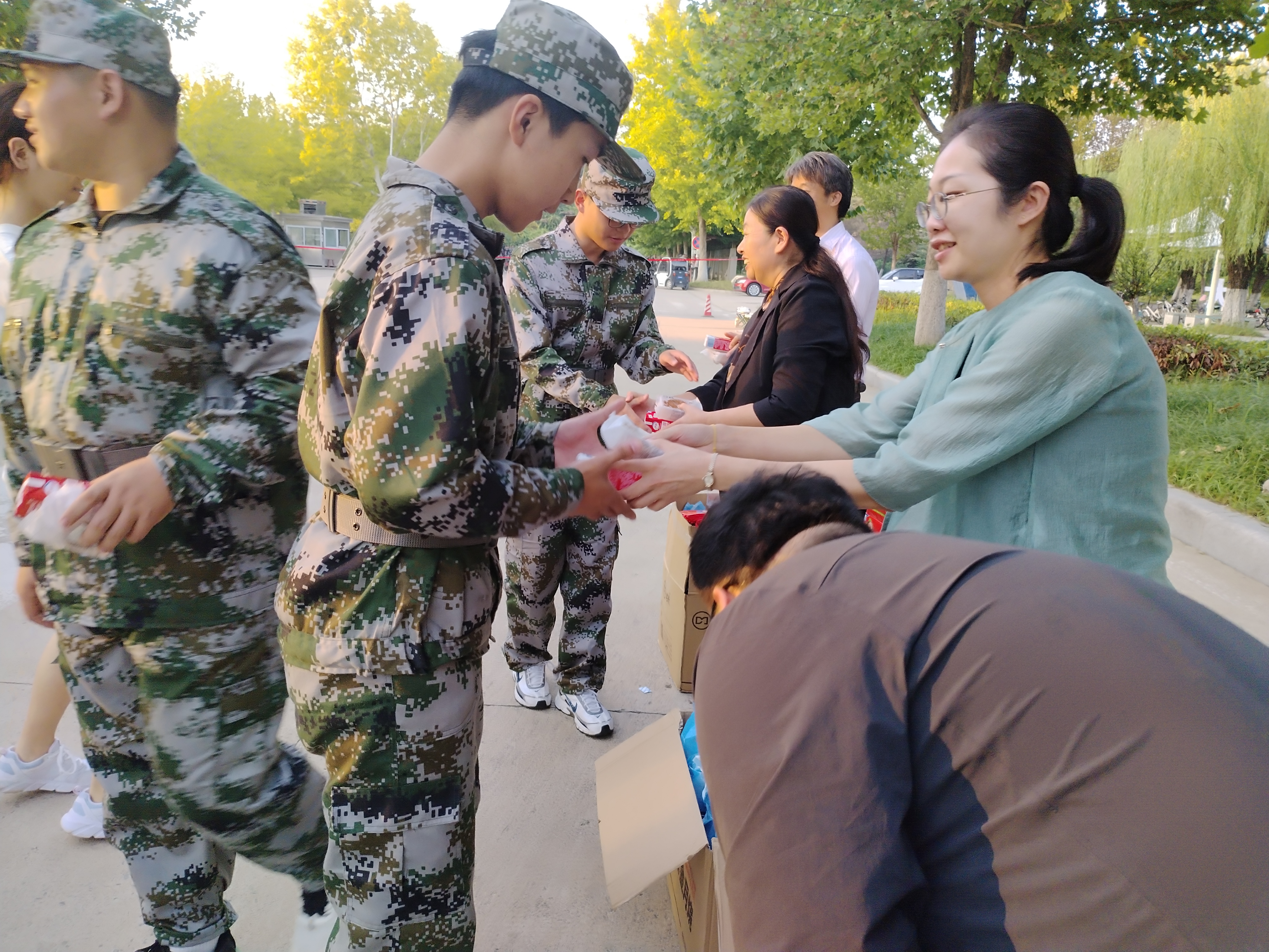 随后,学院领导们为教官和学生们送上了精心准备的牛奶、月饼等慰问品,并向他们送上中秋节最暖心的问候。这份小小的礼物,承载着学院对新生们的关爱与期望,让同学们在艰苦的军训生活中感受到了家的温暖和浓浓的节日氛围。同学们纷纷表示,一定会牢记学院领导的嘱托,认真完成军训任务,以饱满的热情和良好的精神状态投入到大学的学习和生活中去。