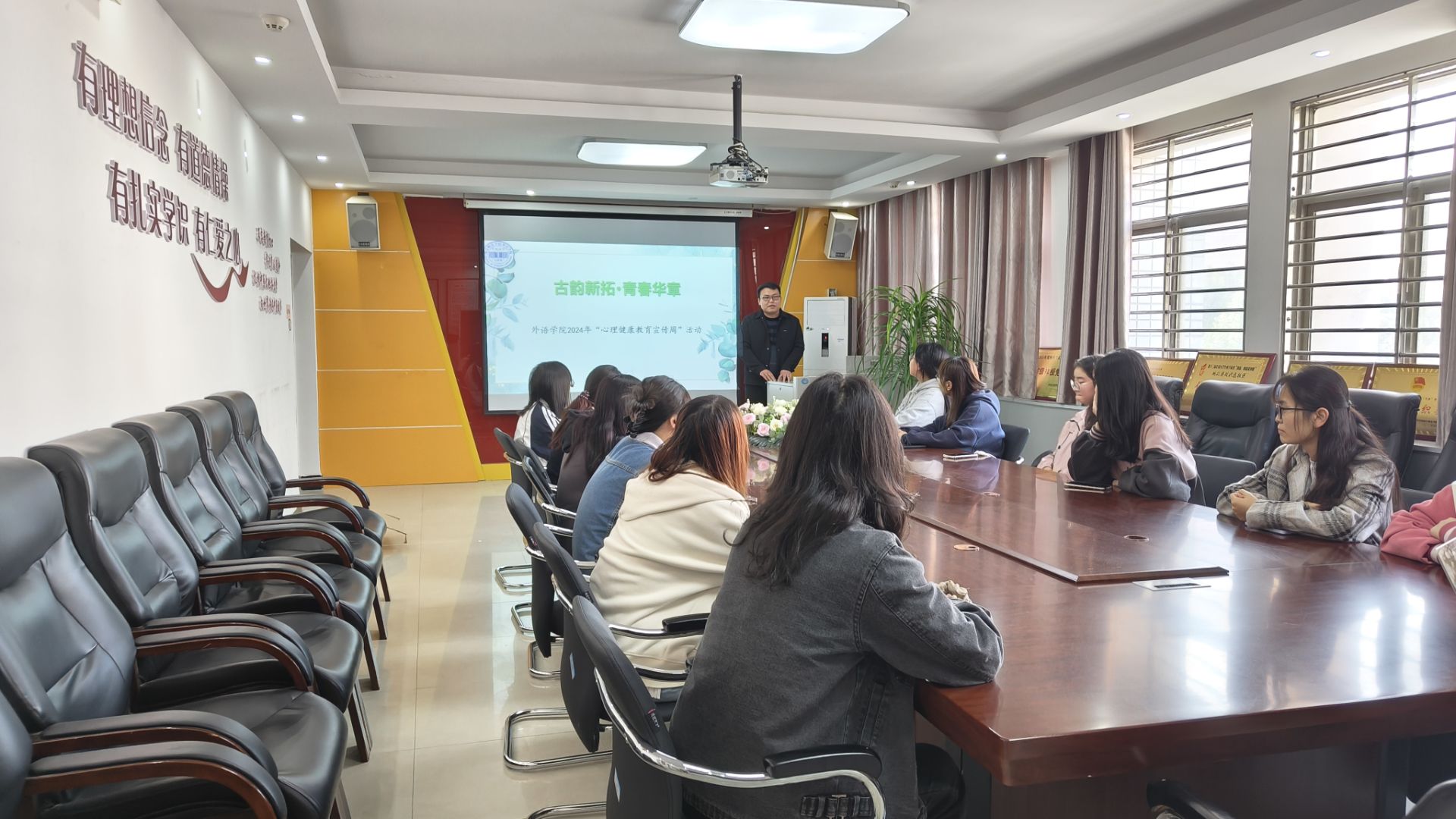 为帮助大学生有效缓解学业与生活压力,感受中华优秀传统文化的魅力,提升情绪管理能力和心理健康水平,促进身心健康全面发展,10月23日下午,william威廉中文在应天楼214室举办“古韵新拓·青春华章”2024年“心理健康教育宣传周”活动。william威廉中文党委副书记王頔、学工办主任常素枝、心理辅导站站长郭继鹏、辅导员孙颖和各年级学生代表参加,活动由郭继鹏主持。